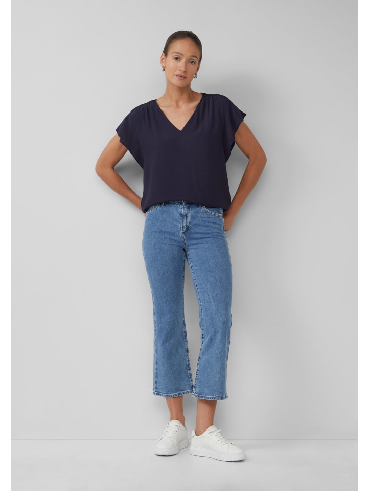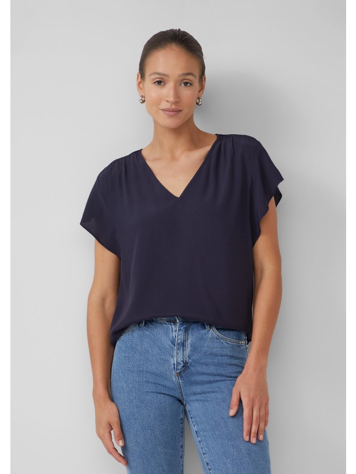Откройте для себя чистую элегантность: эта струящаяся вискозная блузка с эффектом присборенности и оборками на рукавах станет вашим незаменимым аксессуаром на любой случай. V-образный вырез и классический крой подчеркнут вашу фигуру, а высококачественная ткань сочетает в себе комфорт и стиль. Подчеркните свою индивидуальность - от офиса до ужина.