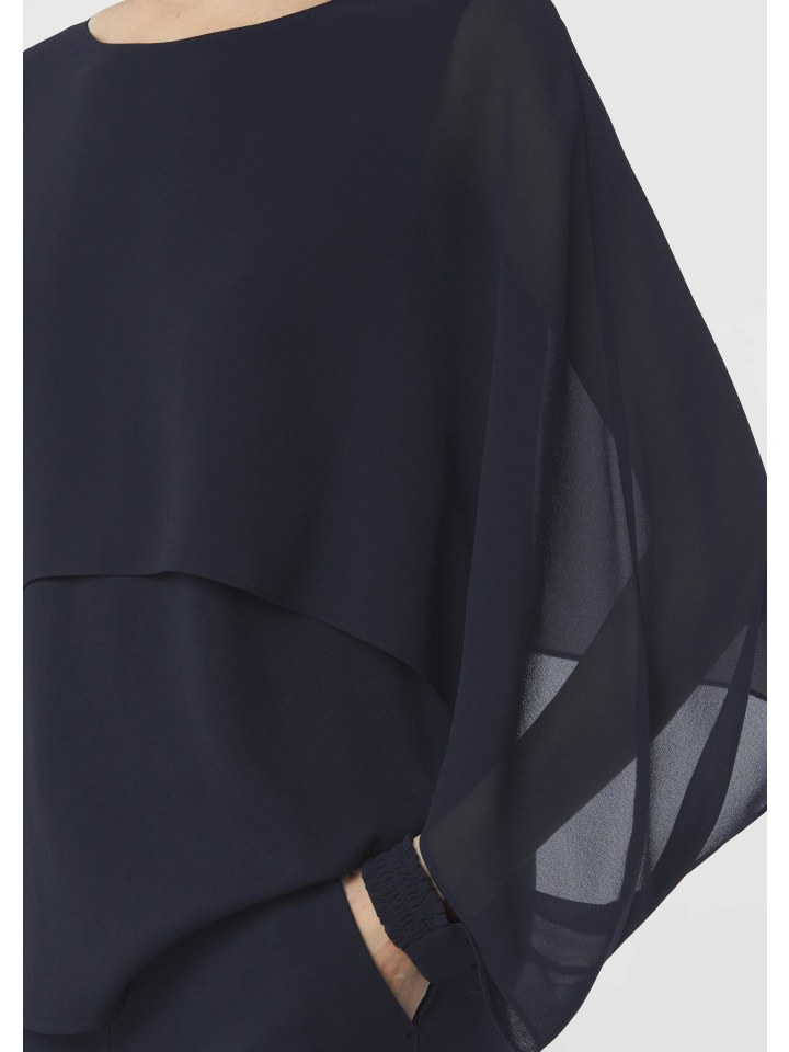Изысканная многослойная блузка из воздушного шифона для элегантного образа. Круглый вырез горловины и эластичные манжеты обеспечивают идеальную посадку. Застежка на пуговицы сзади добавляет женственности. Универсальна и легко сочетается с деловым и праздничным гардеробом. Незаменимая вещь для стильных модниц.