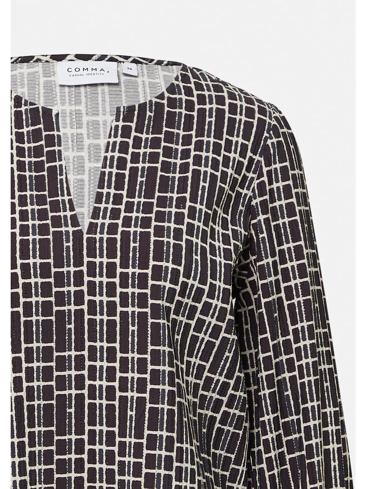 Женственная элегантность и современный комфорт: эта блузка средней длины из слегка крепированной вискозной смесовой ткани впечатляет изысканным принтом по всей поверхности и продуманными деталями. Классический круглый вырез горловины и присборенные манжеты с резинкой добавляют стильные акценты. Плавные сборки и едва заметный разрез придают модели особую женственность. Универсальная и незаменимая вещь на каждый день.