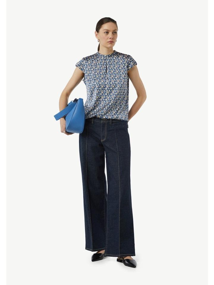 Изящная атласная блузка с женственными сборками создает стильный образ. Короткие рукава из струящегося атласа выгодно подчеркивают фигуру и добавляют элегантные акценты. Изящный узор придает изделию современный вид. Сочетайте блузку с брюками с высокой талией для создания делового образа или с джинсами для создания непринужденного шика.