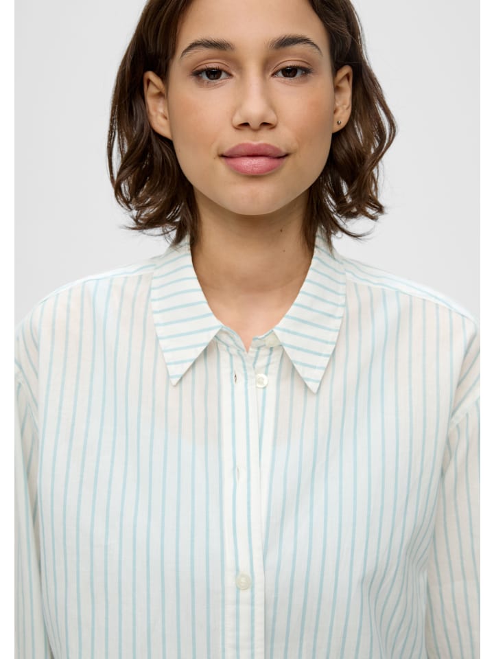 Ваш повседневный образ в полоску: эта длинная блузка из легкого хлопка воплощает собой свободный стиль. Благодаря планке на пуговицах, манжетам и удлиненной спинке вы будете чувствовать себя комфортно и стильно. Идеально подходит для расслабленных дней и стильных образов!