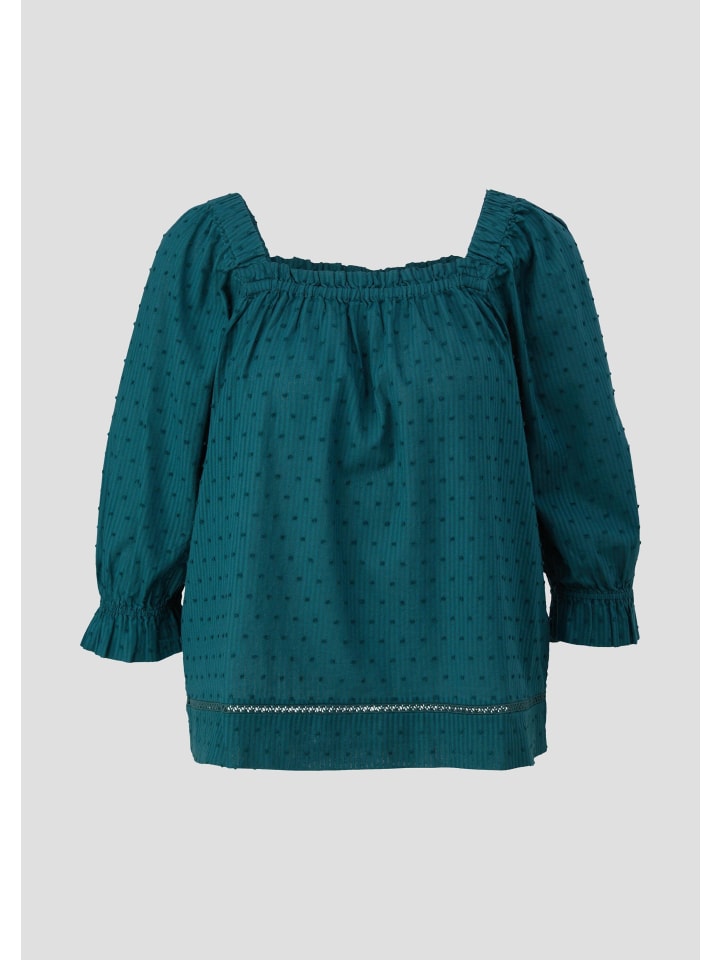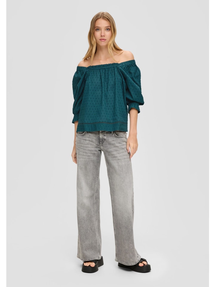 Повседневная блузка с открытыми плечами и модным принтом «добби». Идеально подходит для вашего летнего образа! Воздушная хлопковая ткань и свободный крой обеспечивают максимальный комфорт. Стильные детали, такие как кружево и логотип, делают эту блузку настоящей приманкой для глаз.