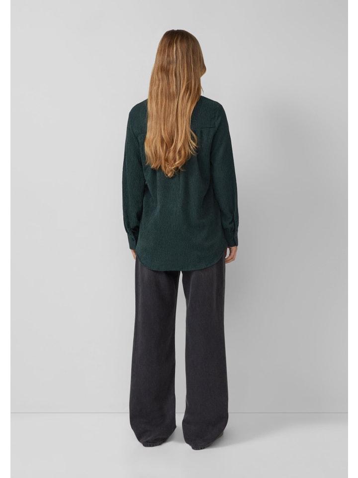 Эта женственная трикотажная блузка из текстурированной эластичной ткани впечатляет изысканной спинкой и удлиненным подолом. Классический рубашечный воротник и манжеты придают ей вневременную элегантность и делают ваш повседневный образ незабываемым.
