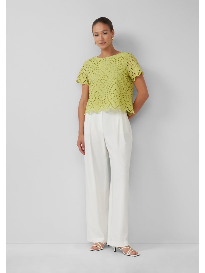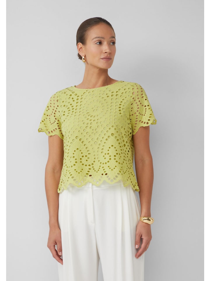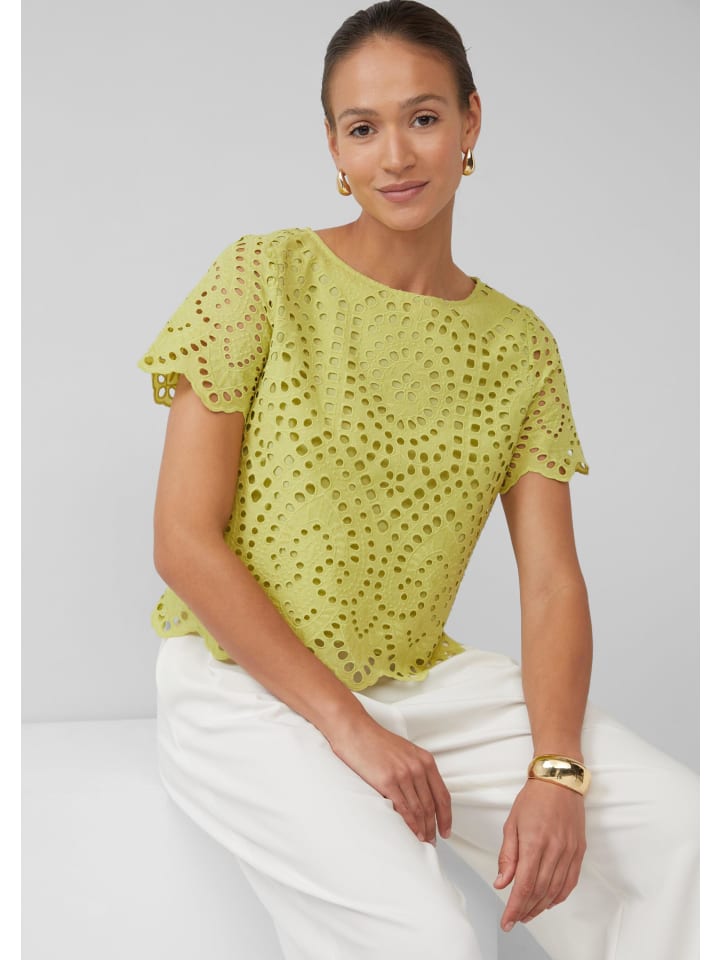Откройте для себя летнюю сторону этой укороченной хлопковой блузки с вышивкой бродери англез. Свободный крой и U-образный вырез горловины создают непринужденный и элегантный образ. Идеально подходит для неформальных мероприятий, вечеринок или отпуска. Фестончатый подол и разрез сзади добавляют изысканности. Ваша новая любимая вещь для уверенного стиля бохо-шик.