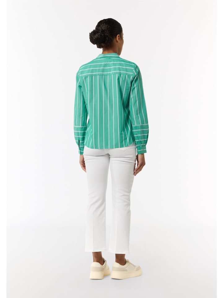 Элегантность вне времени: эта блузка из высококачественного хлопка с полосатым рисунком и манжетами создает женственный силуэт. Рубашечное воротничок и шов добавляют модный шик, а закругленный подол и классический крой подчеркивают непринужденный стиль. Универсальная модель для работы и отдыха - вдохновитесь этой классикой.