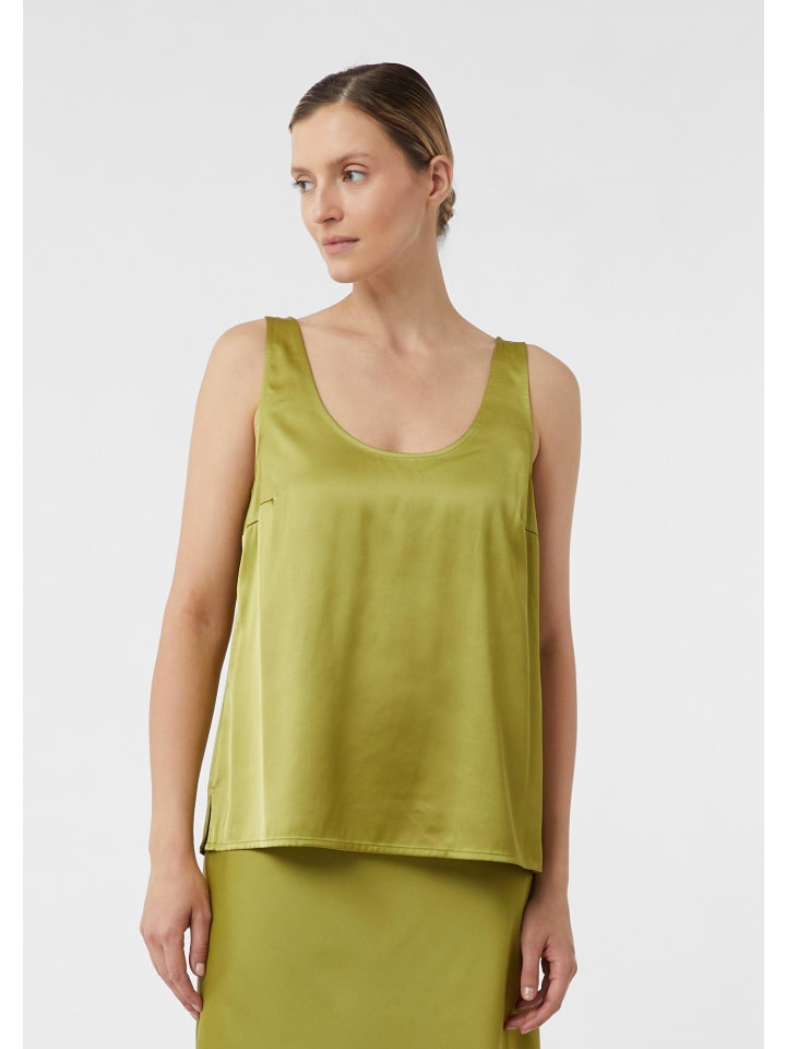 Этот элегантный атласный топ впечатляет глубоким круглым вырезом и струящейся тканью, которая роскошно мерцает и идеально подчеркивает вашу фигуру. Модель без рукавов и средней длины невероятно универсальна: носите ее повседневно с джинсами днем или надевайте с элегантным блейзером для торжественных случаев. Роскошный атлас добавит изысканности вашему образу и создаст незабываемый образ.