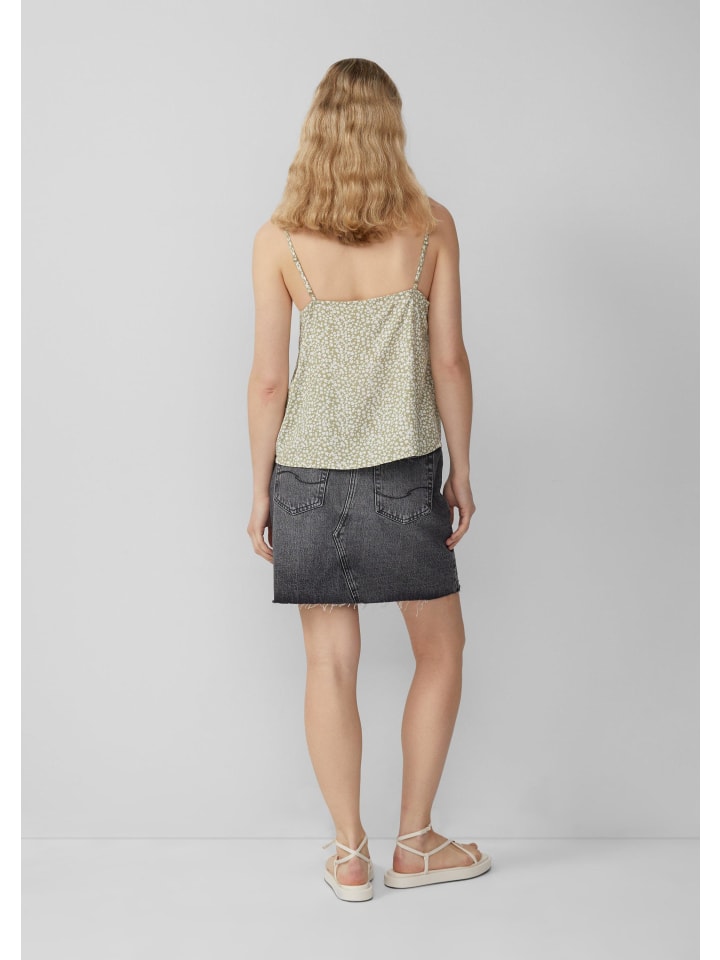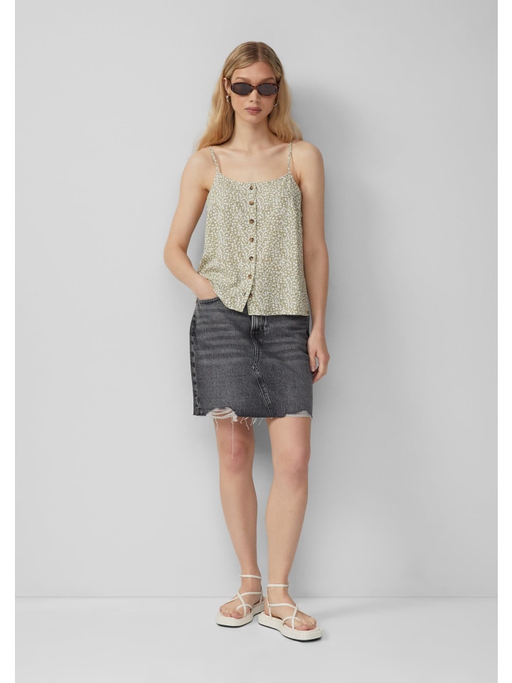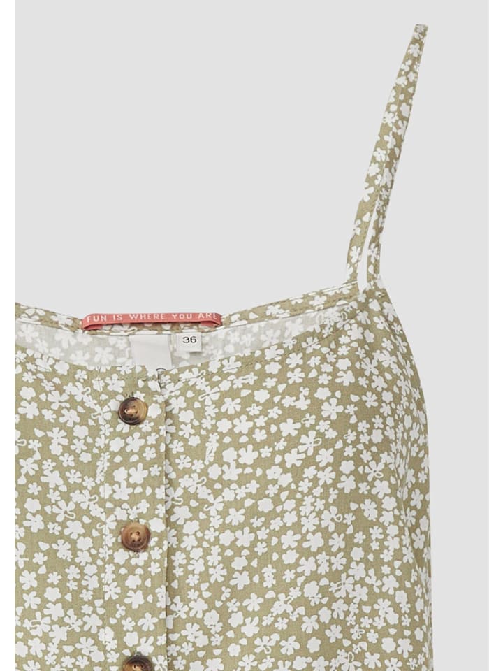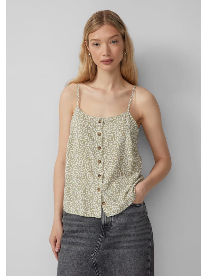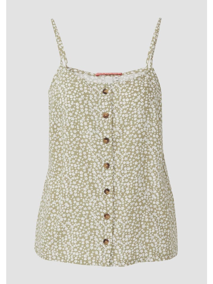 Ваш летний must-have: топ с модным принтом по всей поверхности. Идеально подходит для вечеринок и праздников. Изготовлен из воздушной вискозы, без рукавов и с регулируемыми бретелями. Классический крой для комфорта и расслабления. Планка с пуговицами - стильная деталь.