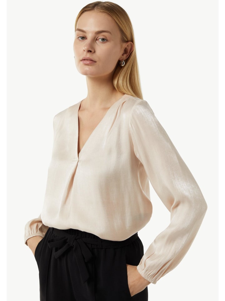 Блестящая элегантность в сочетании с изысканными деталями: эта блузка с длинными рукавами очаровывает своим легким блеском и искусными складками. Струящаяся ткань выгодно подчеркивает фигуру и создает утонченный образ. Идеально подходит для офиса или стильного вечернего выхода - сочетайте блузку со строгими брюками для создания делового шика в классическом стиле или с эффектным ожерельем для создания гламурного образа.