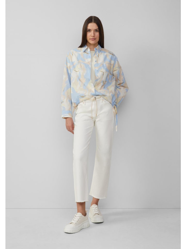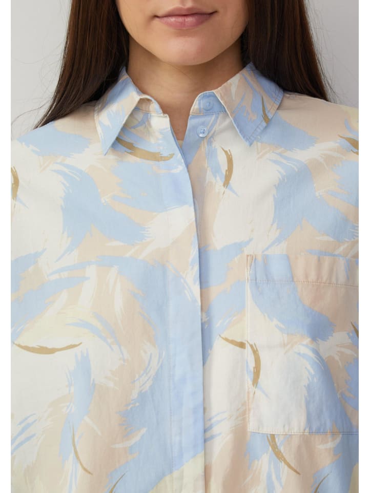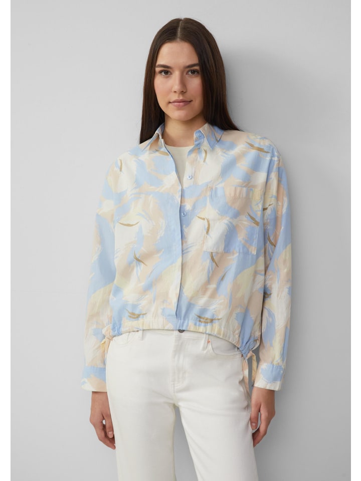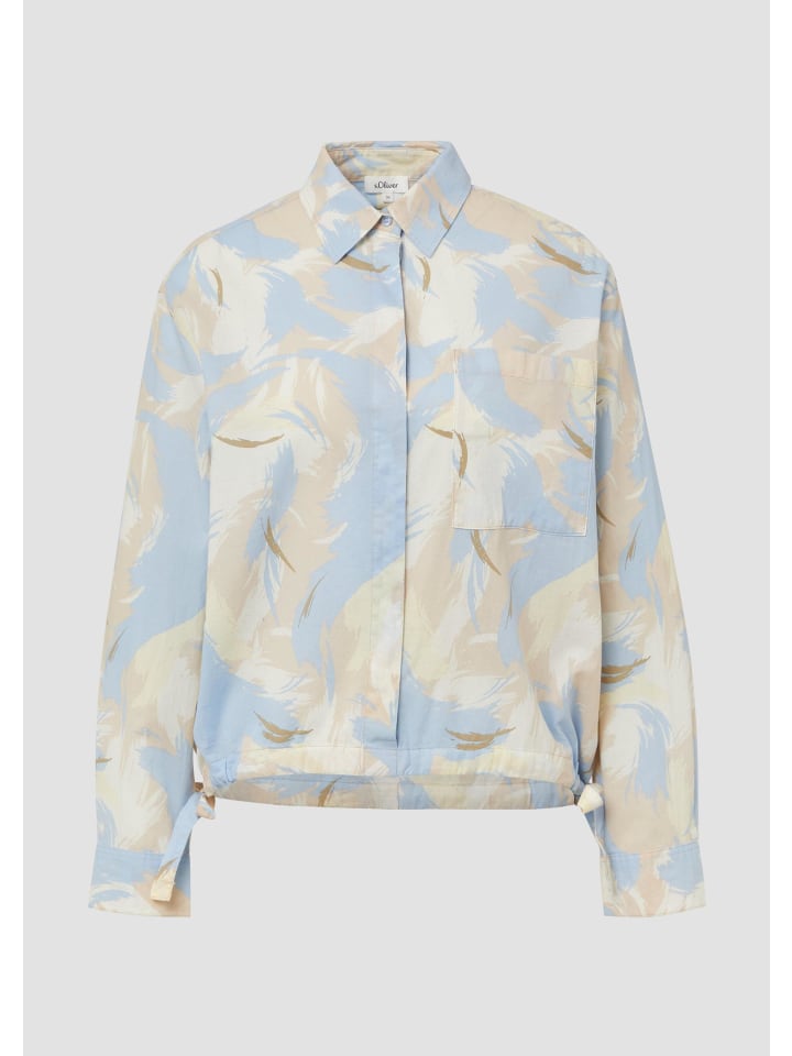 Эта повседневная блузка-рубашка с эффектным принтом по всей поверхности очаровывает своим женственным О-образным силуэтом. Практичный низ на шнурке и потайная планка на пуговицах обеспечивают непринужденный вид. Нагрудный карман добавляет стильный акцент.