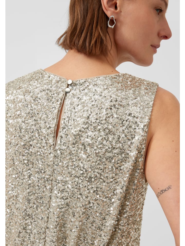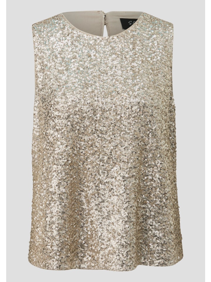 Сочетание гламура и вневременной элегантности: эта безрукавная блузка с пайетками из вискозной смеси обеспечит комфорт, а сверкающие детали идеально подчеркнут ваш праздничный образ. Идеальный вариант для особых случаев.