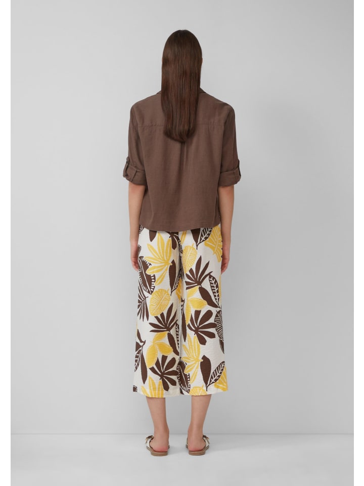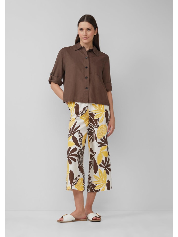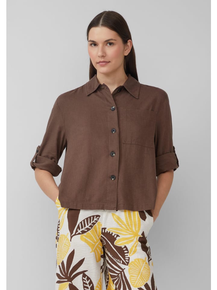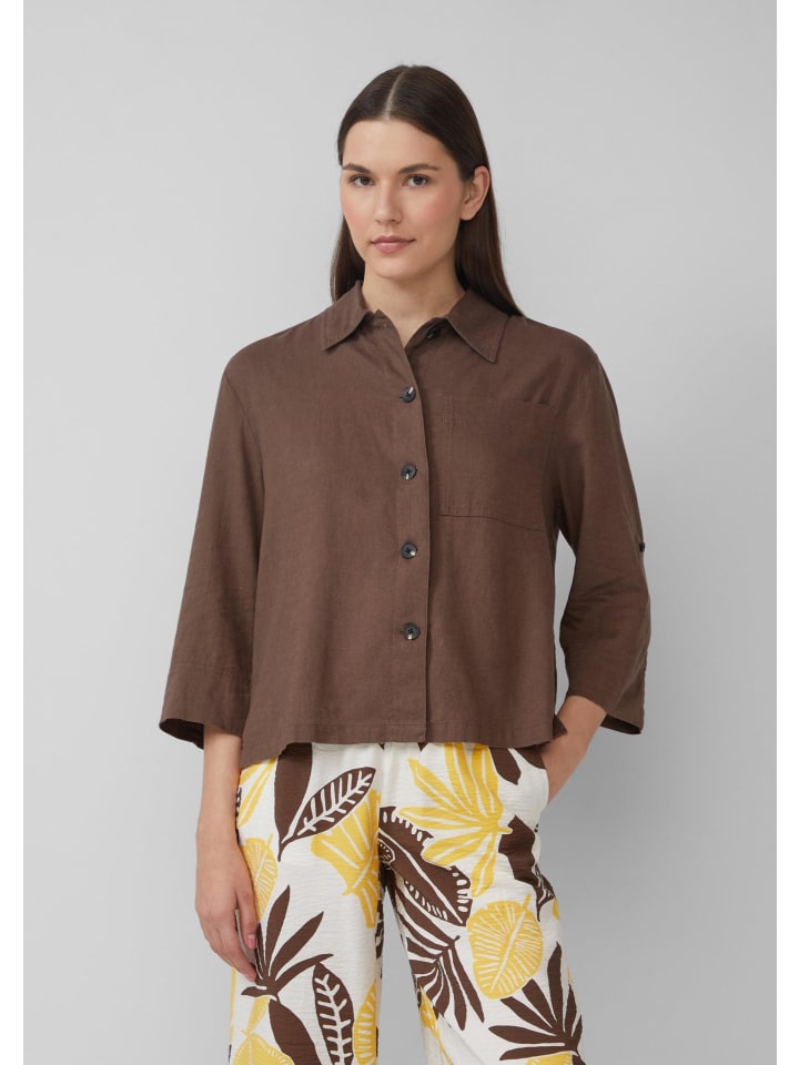 Эта воздушная и легкая блузка-рубашка из смесового льна впечатляет своим свободным кроем и рукавами три четверти. Классический рубашечный воротник и практичный нагрудный карман делают ее идеальным компаньоном для расслабленных летних дней.