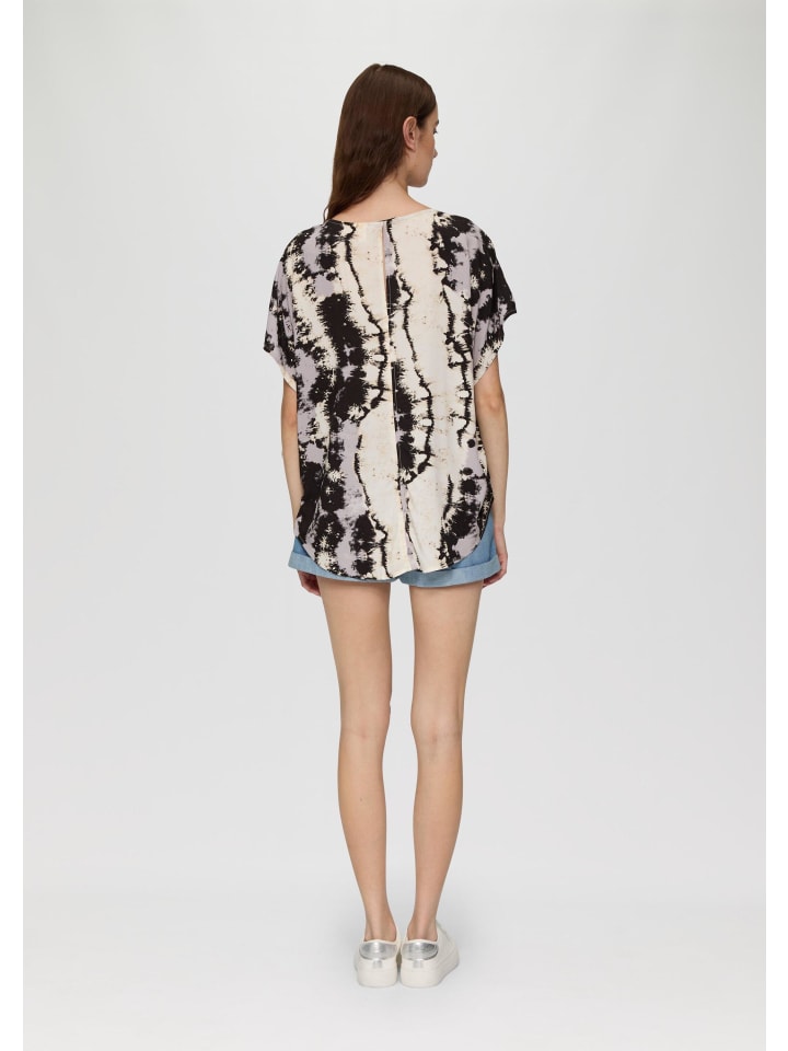 Свободная блузка свободного кроя из струящейся вискозы для непринужденного образа. Круглый вырез, вырезы и спущенные плечи обеспечат вам стильный повседневный образ. Закругленный подол с боковыми разрезами добавляет дополнительную прохладу.