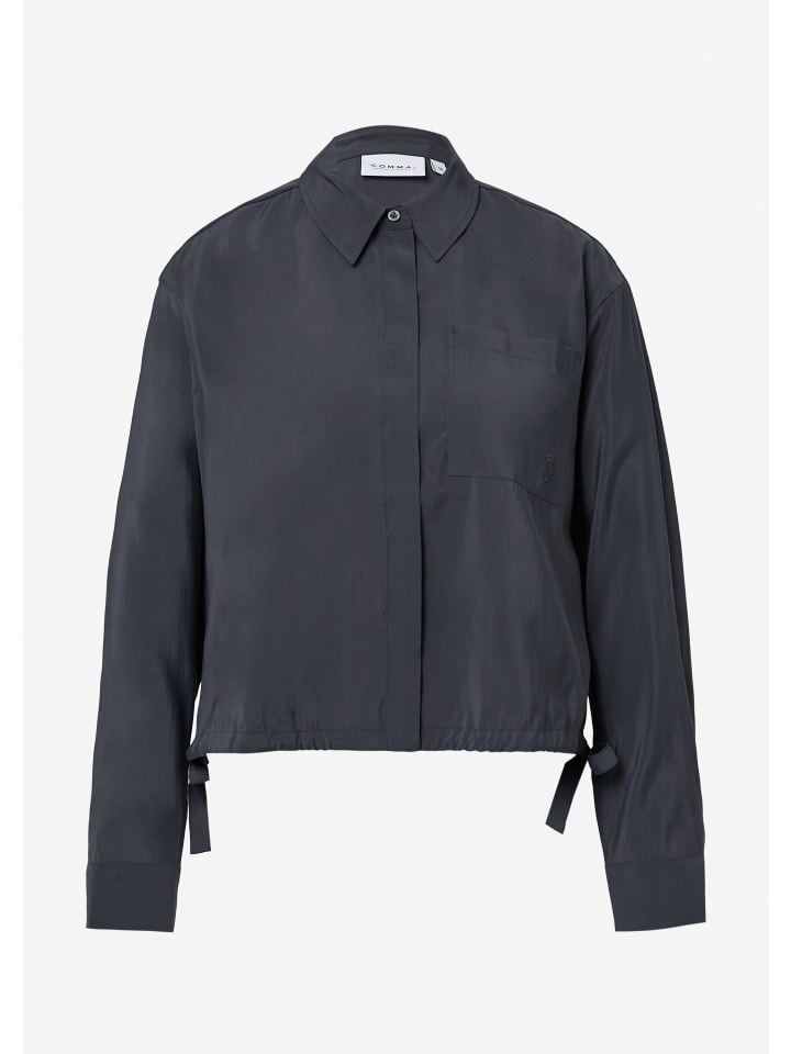 Элегантность вне времени: эта укороченная блузка свободного кроя впечатляет изысканными деталями. Классический рубашечный воротник и функциональные банты на разрезе придают изделию современный вид. Изготовленная из высококачественной смеси модала, она очаровывает своей легкостью и изысканностью. Потайная планка на пуговицах и накладной карман дополняют дизайн. Идеально подходит для повседневных образов, вечерних нарядов или отпуска.