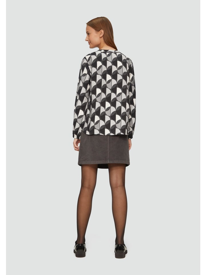 Эта структурированная блузка с принтом по всей поверхности очаровывает женственными сборками и струящейся вискозной тканью. Закругленный, удлиненный сзади подол и элегантные манжеты придают ей особый шарм.