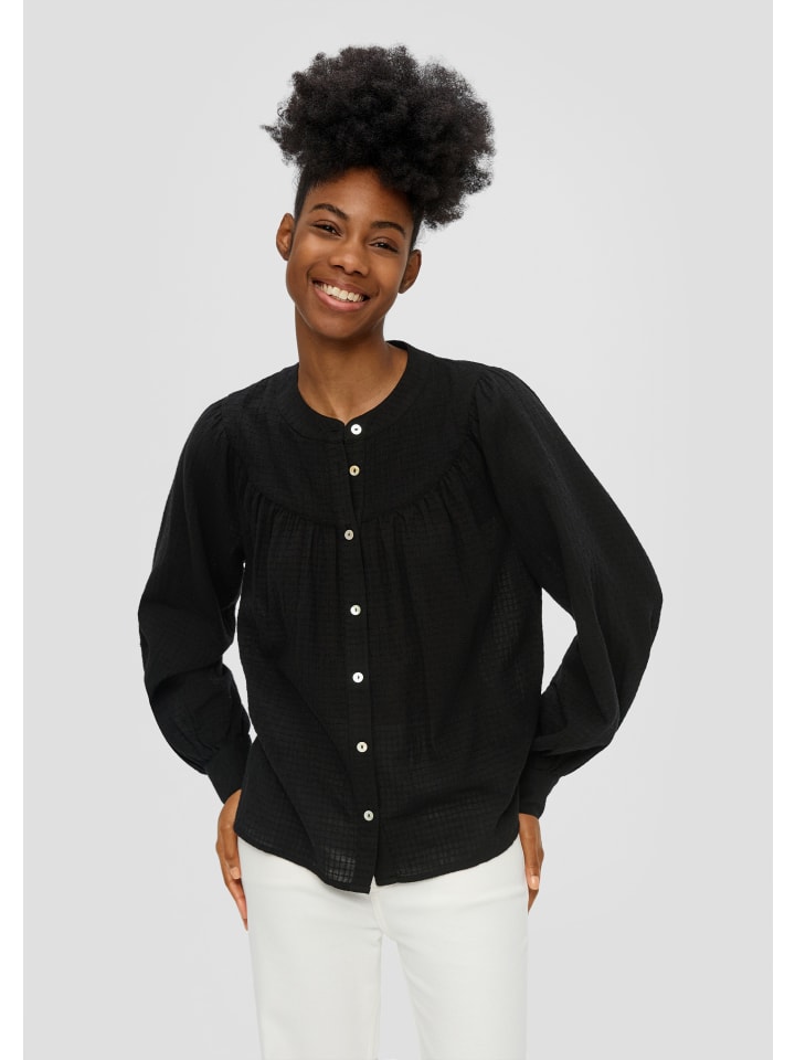 Свободная блузка с модным рисунком «добби» и свободным кроем. Идеально подходит для повседневной носки или стильных вечерних выходов. Круглый вырез и сборка придают модели непринужденный вид. Изготовлена из легкого хлопка для комфортной носки.