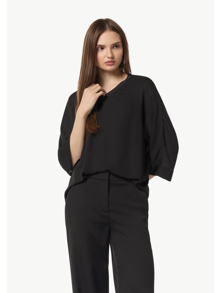 Повседневная, но элегантная летняя блузка: эта шифоновая блузка с рукавами 3/4 и V-образным вырезом мягко подчеркивает фигуру. Благодаря свободному крою и воздушной ткани она сохраняет прохладу в теплые дни. Носите эту универсальную вещь непринужденно с джинсами или женственно с юбкой - она всегда будет выглядеть стильно.