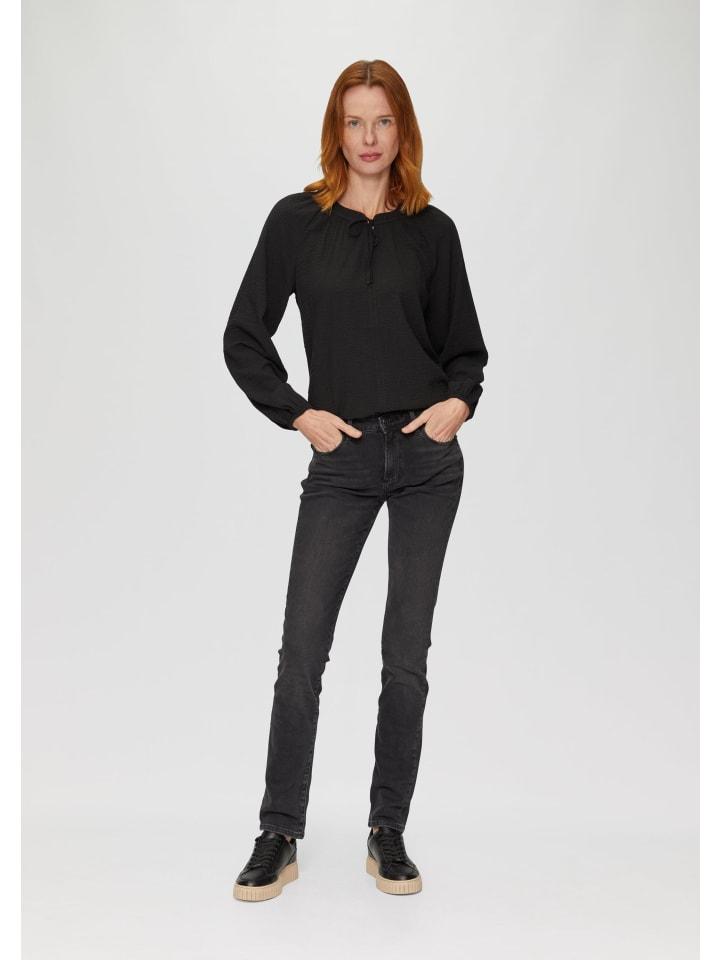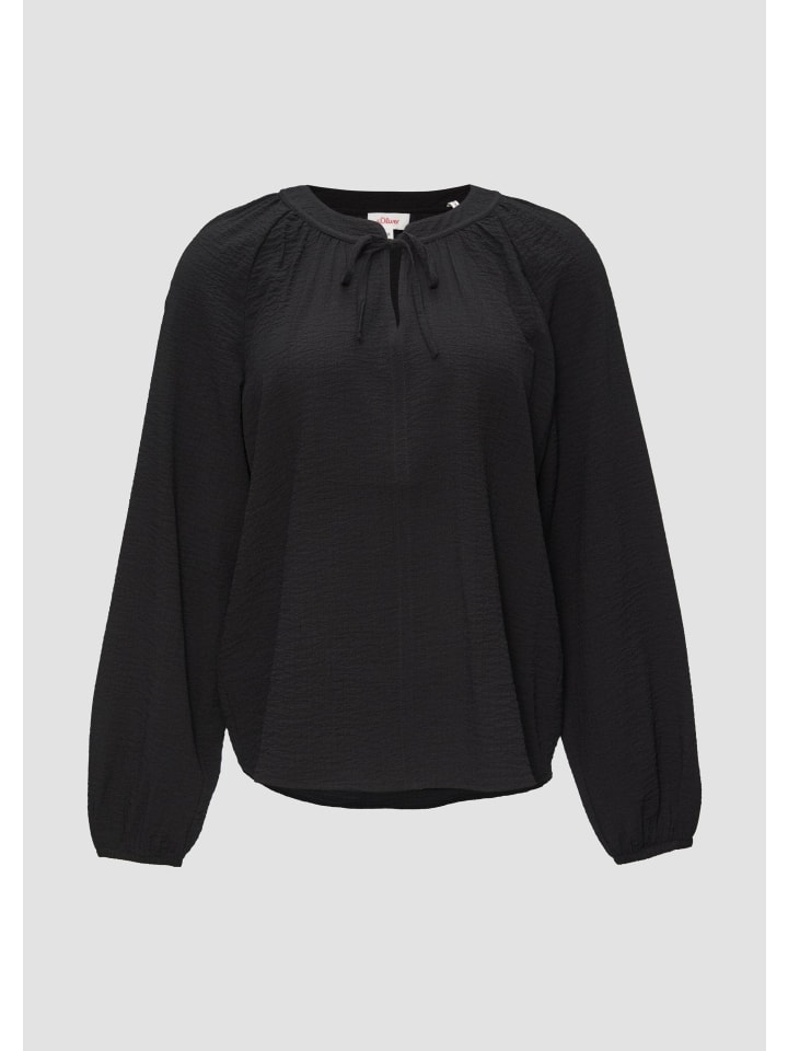 Эта воздушная, легкая блузка с тонкой фактурой и изысканными деталями создает элегантный образ. Женственный воротник-стойка и струящийся силуэт делают ее идеальным спутником - будь то в офисе или на прогулке по городу.