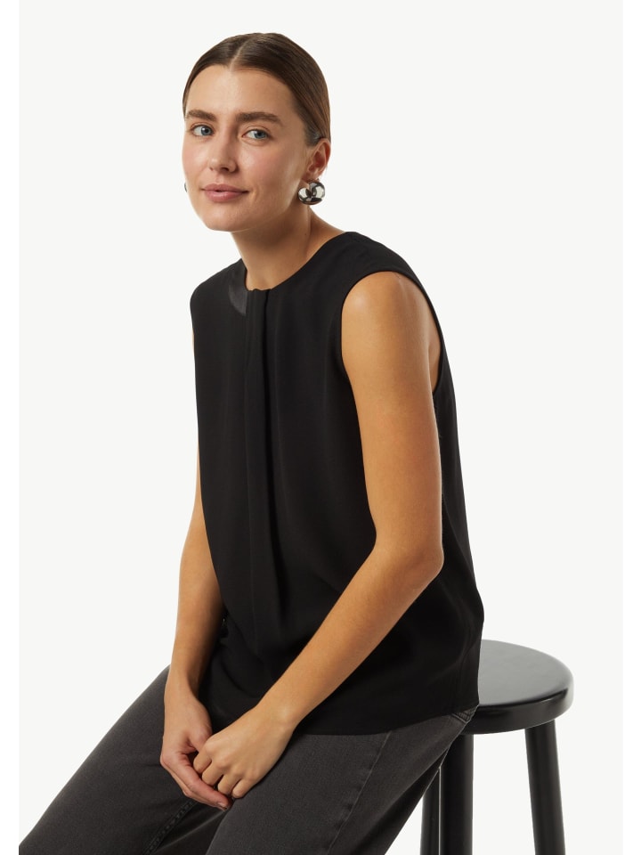 Топ из крепа с изысканной плиссировкой для стильного образа. Без рукавов и круглый вырез горловины создают элегантный образ. Изготовленный из мягкой вискозы, топ невероятно приятен на ощупь. Классический крой и средняя длина обеспечивают максимальный комфорт. Он универсален для любых мероприятий: от деловых встреч до свиданий. Незаменимая вещь в вашем гардеробе!