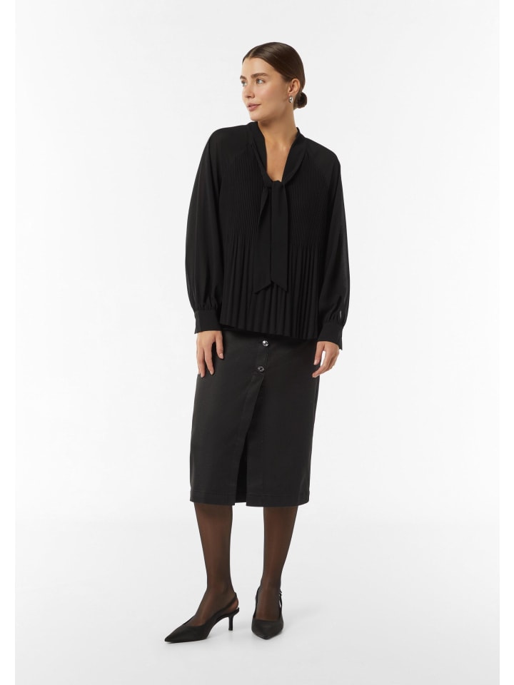 Блузка из шифона со складками и бантом: воздушный шедевр элегантности. V-образный вырез и длинные рукава создают женственный силуэт. Благодаря свободному крою блузка прекрасно подчеркивает фигуру. Идеально подходит для офиса или вечернего выхода - сочетайте ее с узкими джинсами для создания непринужденного и элегантного образа или с юбкой-карандаш для делового образа.