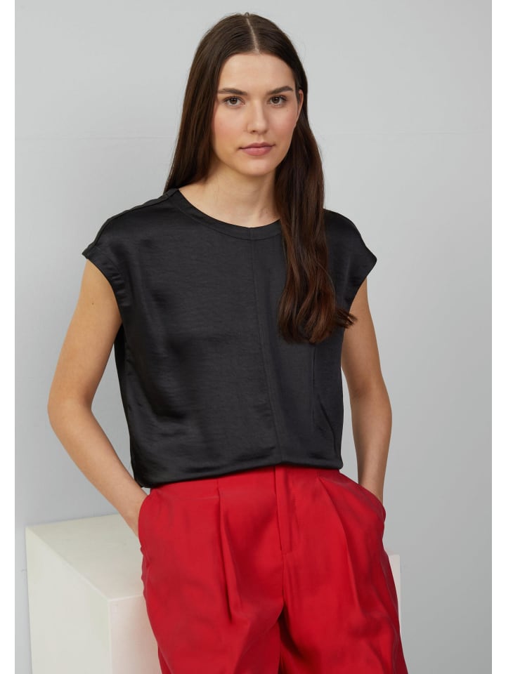 Этот женственный атласный топ со спущенным плечом добавит элегантности вашему повседневному образу. Элегантная блузка с застежкой на пуговицы и центральным швом выгодно подчеркнет любую фигуру благодаря своему прямому крою - идеально подходит для повседневной носки.