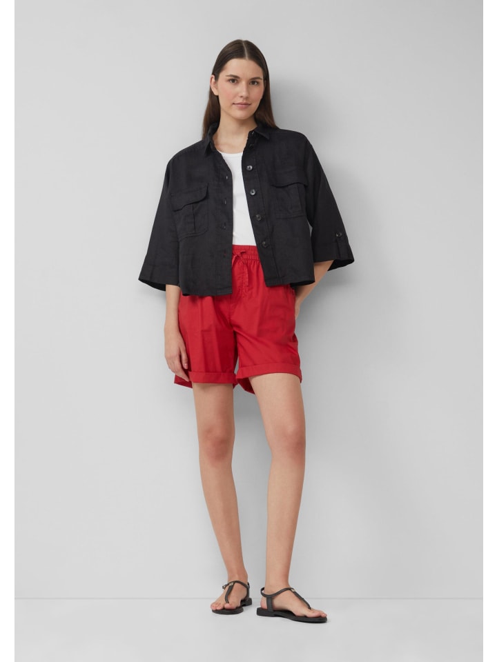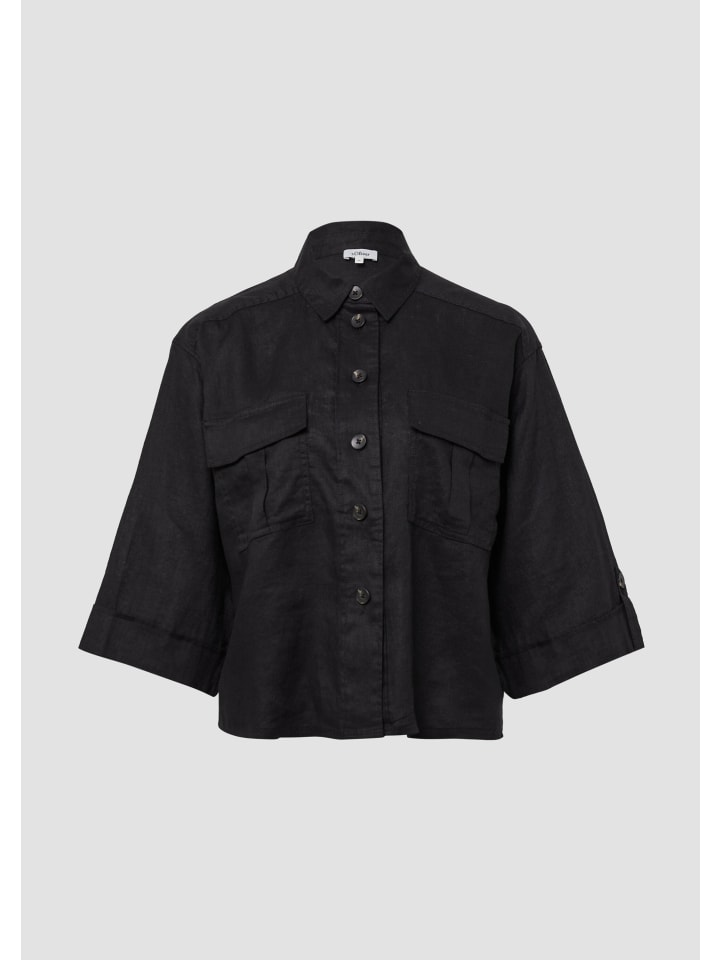 Эта воздушная льняная блузка свободного кроя сочетает в себе комфорт и стиль. Благодаря рукавам 3/4, практичным карманам-карго и нагрудным карманам, а также классической планке на пуговицах, она станет вашим универсальным спутником для расслабленных летних дней.