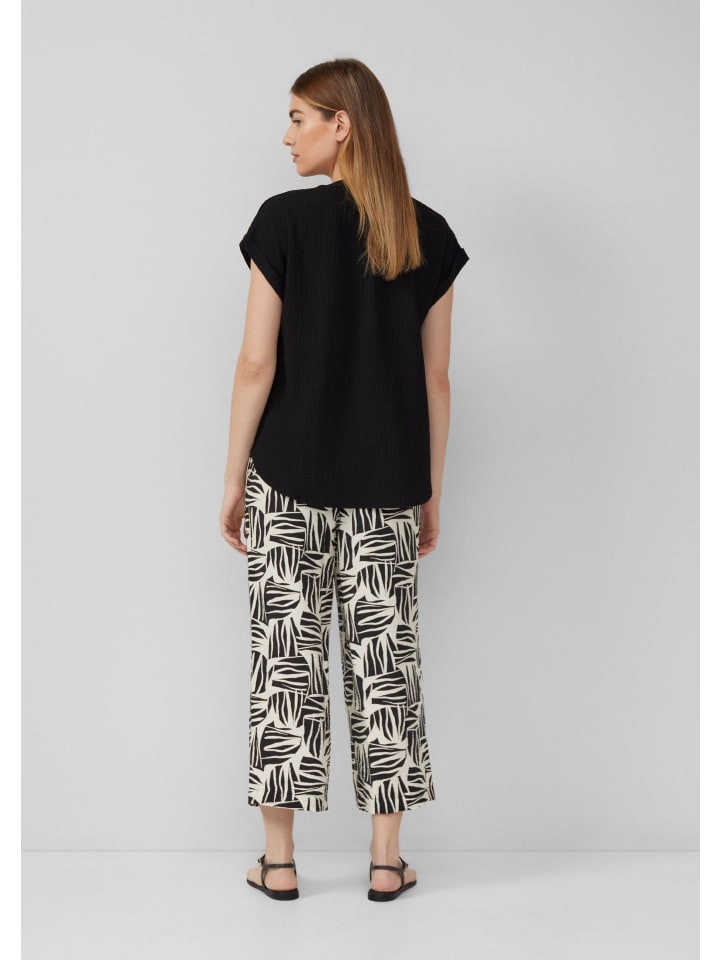 Эта структурированная блузка свободного кроя очаровывает комфортной вискозной смесью. Благодаря V-образному вырезу и свободному крою она станет вашим универсальным спутником для расслабленных повседневных моментов.