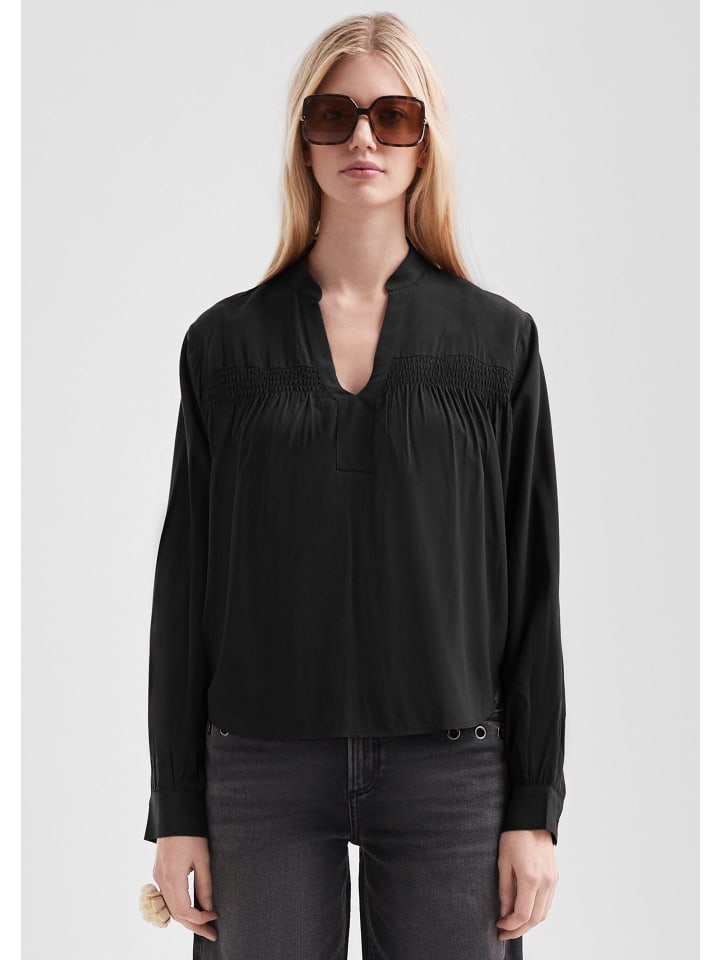 Повседневная блузка с женственным оттенком: струящаяся вискоза сочетается с элегантным блузообразным кроем. V-образный вырез и манжеты делают ее универсальным дополнением - как для офиса, так и для бара. Ваш новый фаворит для непринужденных повседневных образов!
