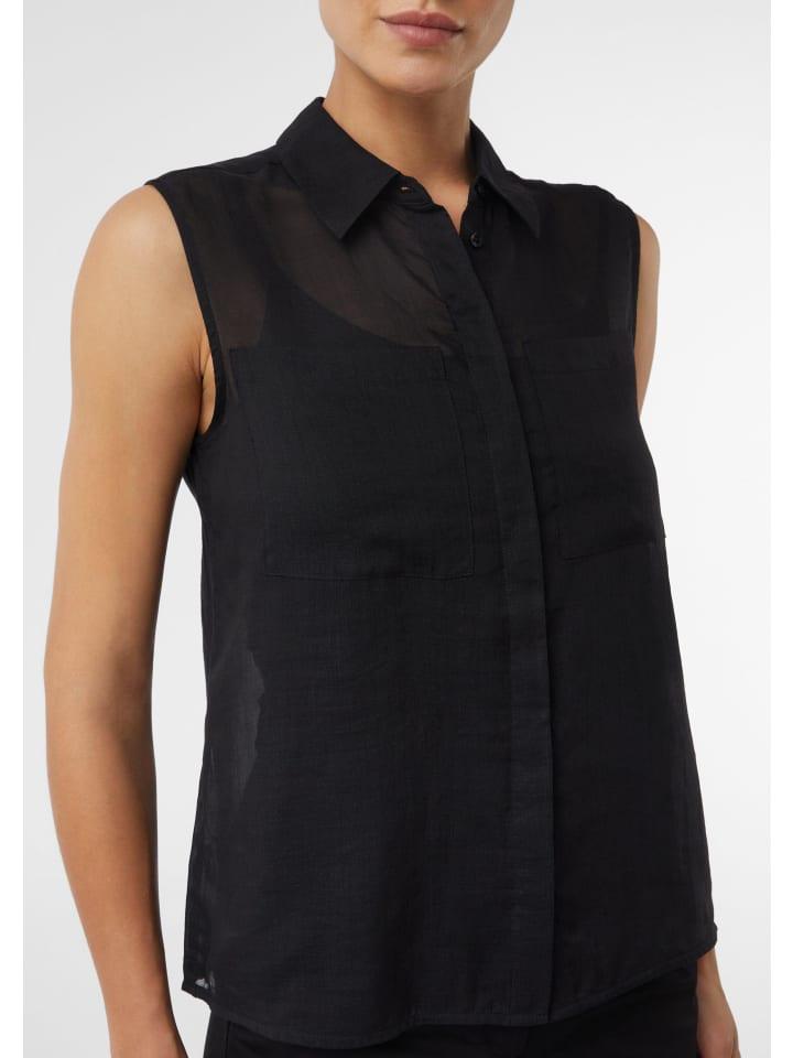 Вневременная элегантность в сочетании с летней легкостью: эта блузка без рукавов из рами впечатляет накладными карманами и классическим рубашечным воротником. Скрытая застежка на пуговицы создает строгий образ, а спущенные плечи добавляют современный штрих. Сочетайте эту блузку средней длины с кюлотами для создания стильного делового образа или с шортами для повседневного образа.