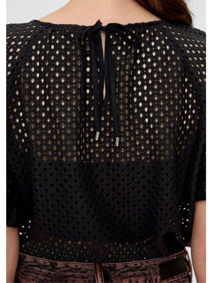 Ваша летняя изюминка: воздушная кружевная блузка свободного кроя. Идеально подходит для прохладных дней и жарких ночей. Хлопковая смесь дарит восхитительные ощущения, а рукава-фонарики и вырез на спине добавляют стильные акценты. Завязка добавляет дополнительную прохладу.