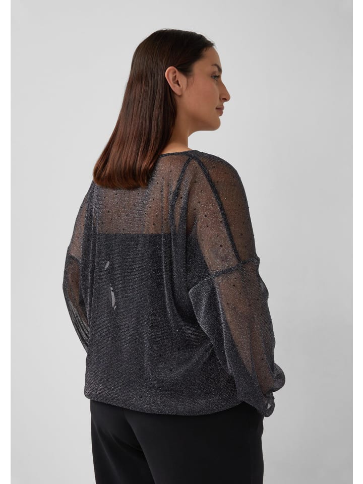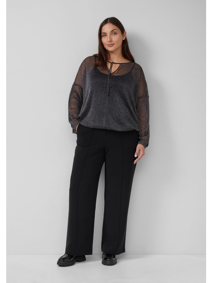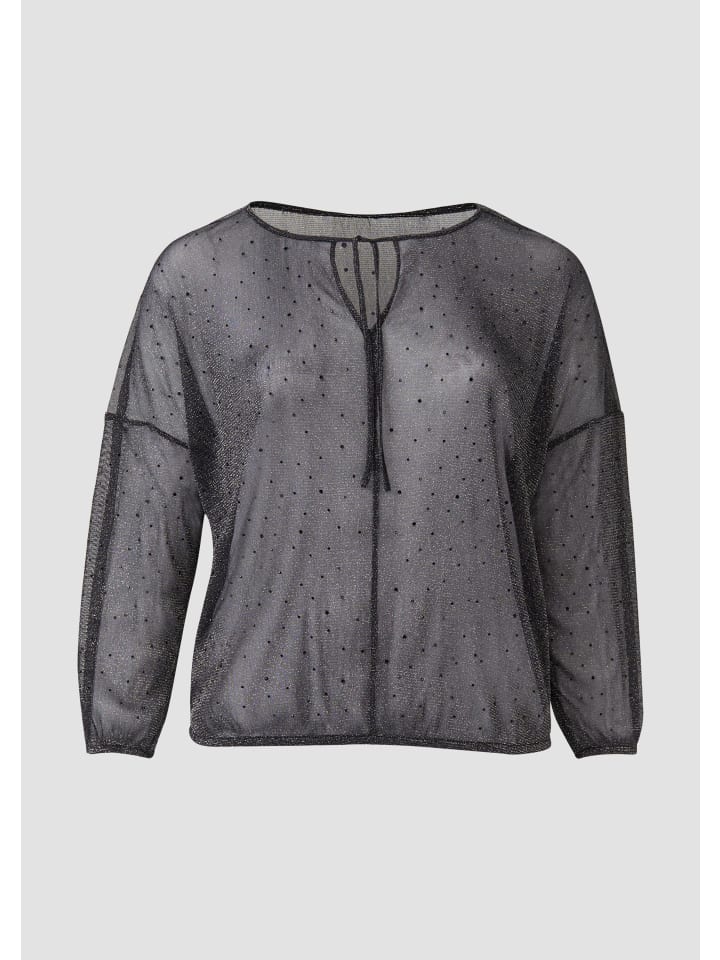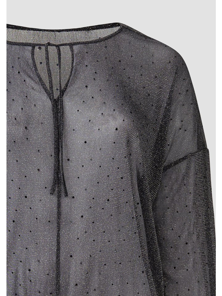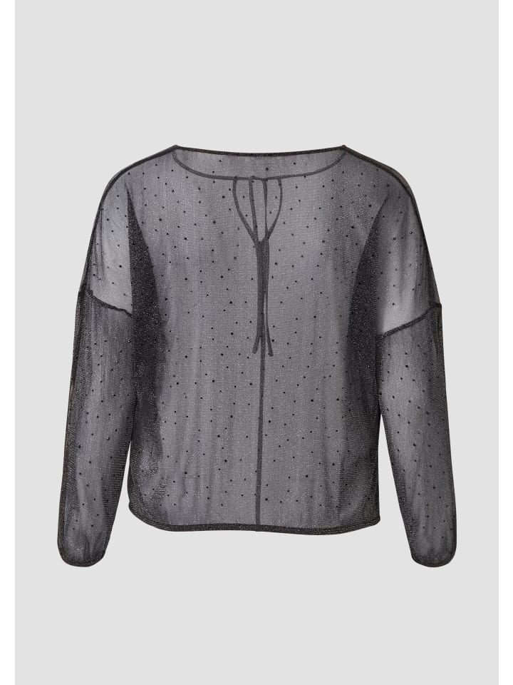 Гламурная, сверкающая блузка для непринужденного, повседневного образа: эта прозрачная блузка со сверкающими стразами и мерцающей блестящей пряжей очаровывает своим женственным силуэтом. Круглый вырез горловины с завязкой добавляет элегантности.