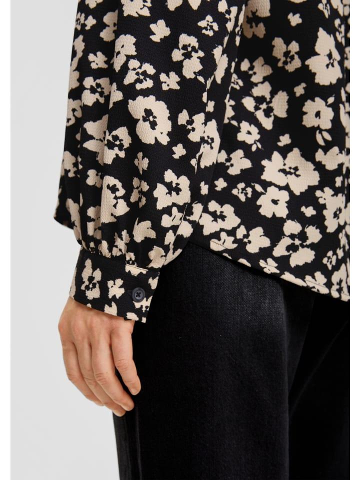 Откройте для себя креповую блузку с принтом по всей поверхности: ваш женственный спутник на каждый день. Туникообразный вырез, сборка и планка на пуговицах сочетают в себе комфорт и стиль. Легкая ткань и манжеты делают ее идеальным нарядом для прохладных летних дней.
