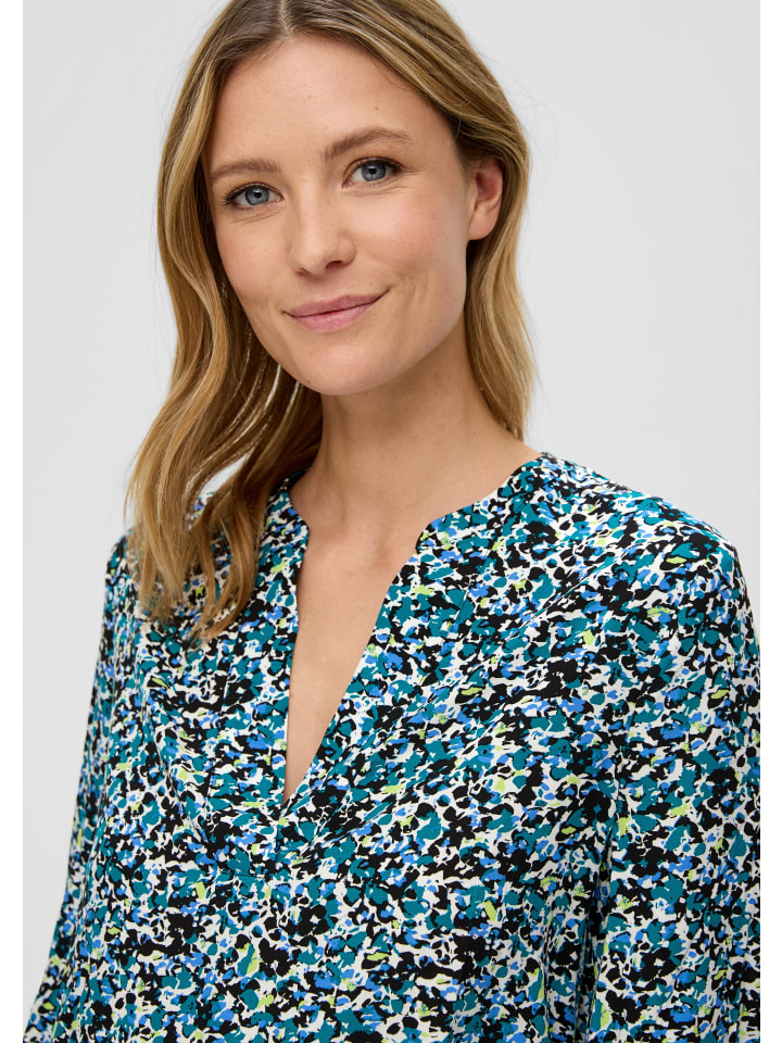 Эта струящаяся блузка-туника с абстрактным принтом по всей поверхности сочетает в себе женственное очарование и непринужденный повседневный стиль. Вырез горловины, рукава три четверти с манжетами и закругленный низ создают непринужденный образ на каждый день.