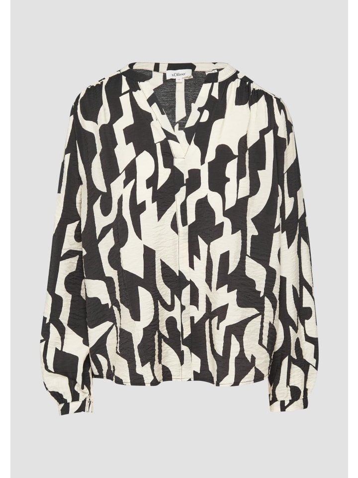 Эта воздушная и легкая вискозная блузка с изысканным принтом по всей поверхности впечатляет своим женственным силуэтом. Текстурированная поверхность, туникообразный вырез и эластичные манжеты сделают ее идеальным дополнением к непринужденным и повседневным образам.