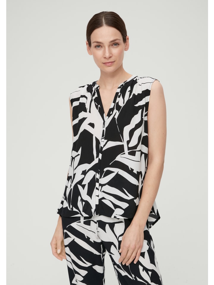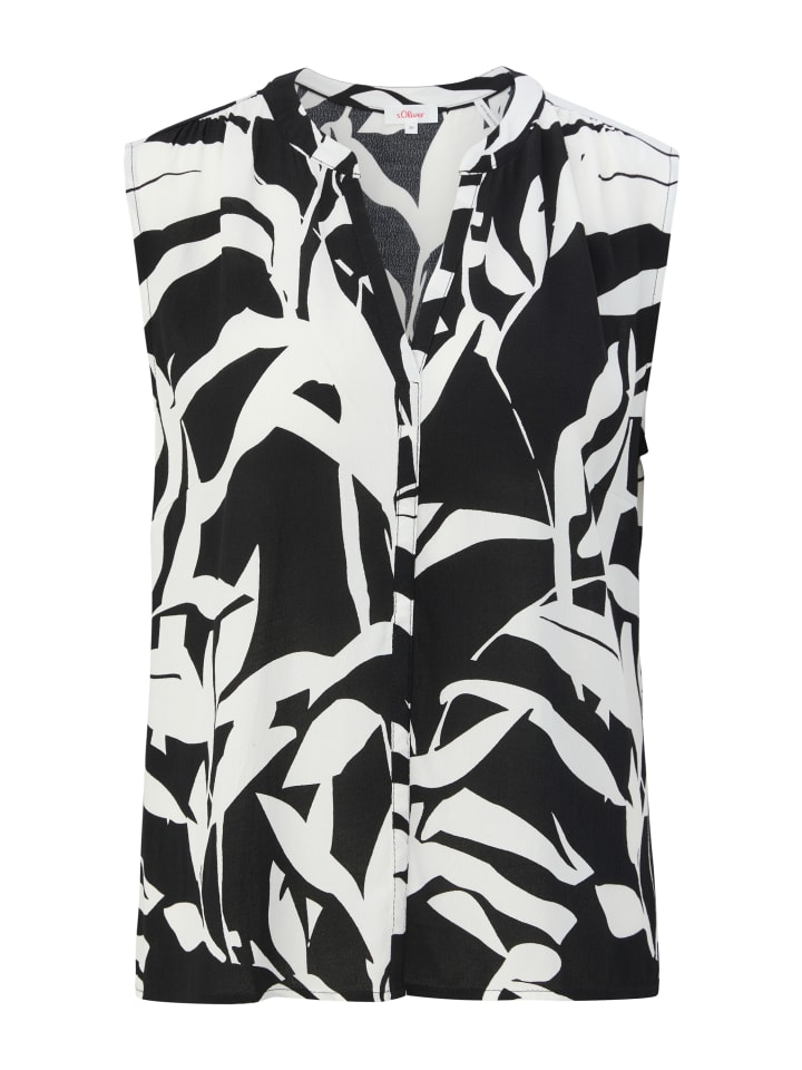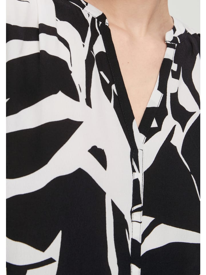 Воздушная и легкая блузка из вискозы с нежным принтом по всей поверхности и элегантной креповой текстурой. Свободный силуэт прямого кроя с туникообразным вырезом и изысканными декоративными швами создает непринужденный женственный образ. Полупрозрачный материал добавляет модный штрих.