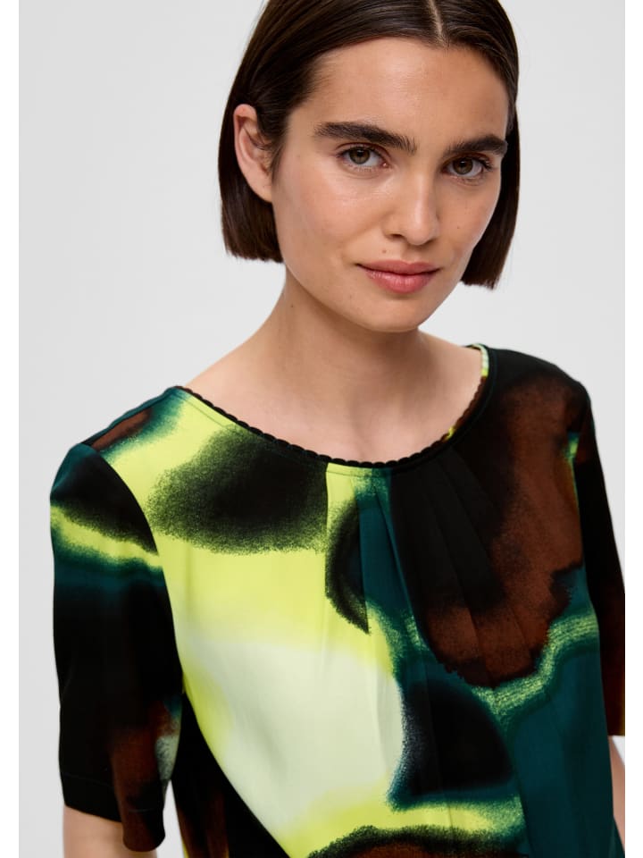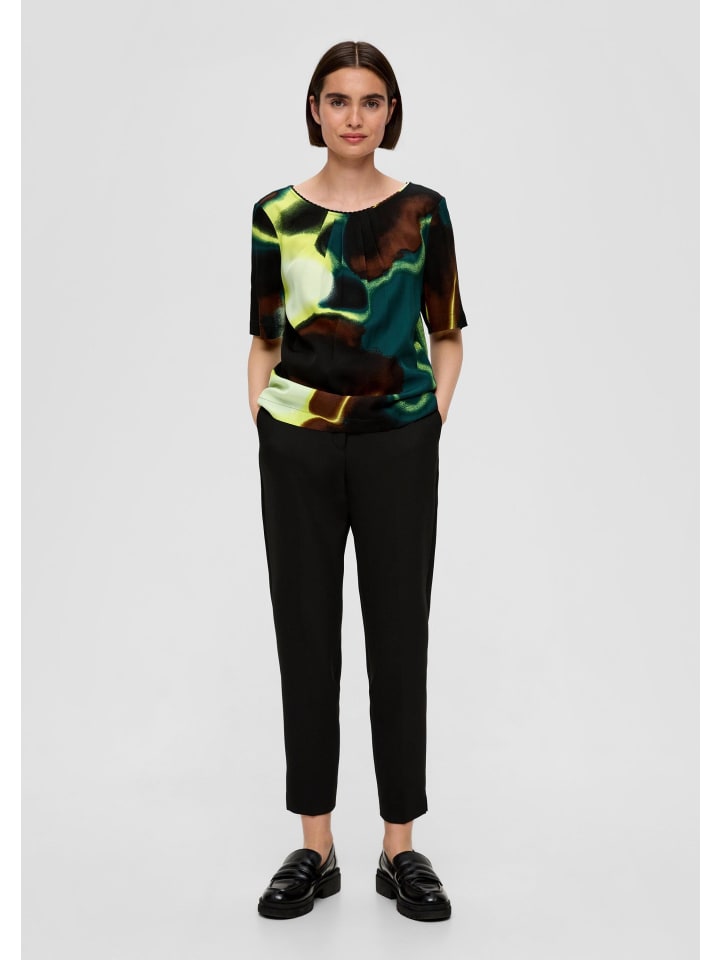 Откройте для себя идеальную блузку из твила из 100% гладкой вискозы - незаменимая вещь на каждый день! Эта воздушная блузка свободного кроя с круглым вырезом идеально подходит для повседневных случаев. Классический крой и короткие рукава обеспечивают комфорт и стиль. Сочетайте ее с джинсами для создания непринужденного образа или надевайте под блейзер для более изысканного образа. Эта универсальная блузка идеально подходит для предстоящего сезона и быстро станет вашим новым фаворитом в гардеробе. Почувствуйте себя свободной и женственной в этой модной блузке! Чего же вы ждете? Побалуйте себя этой модной изюминкой!