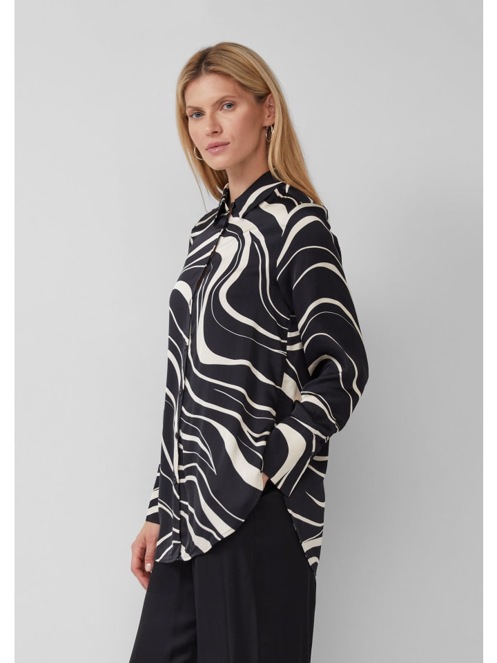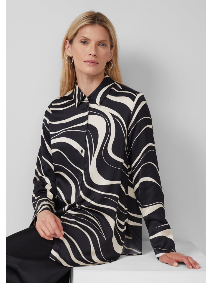 Элегантность и универсальность: эта блузка-рубашка с принтом по всей поверхности станет вашим незаменимым аксессуаром на любой случай. Удлиненный крой и атласно-вискозная ткань подчеркнут вашу фигуру. Благодаря рубашечному воротнику и манжетам вы легко сочетаете деловой шик с непринужденным повседневным образом. Подчеркните свою индивидуальность - от офиса до ужина.