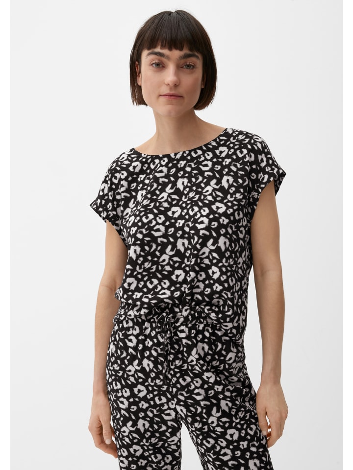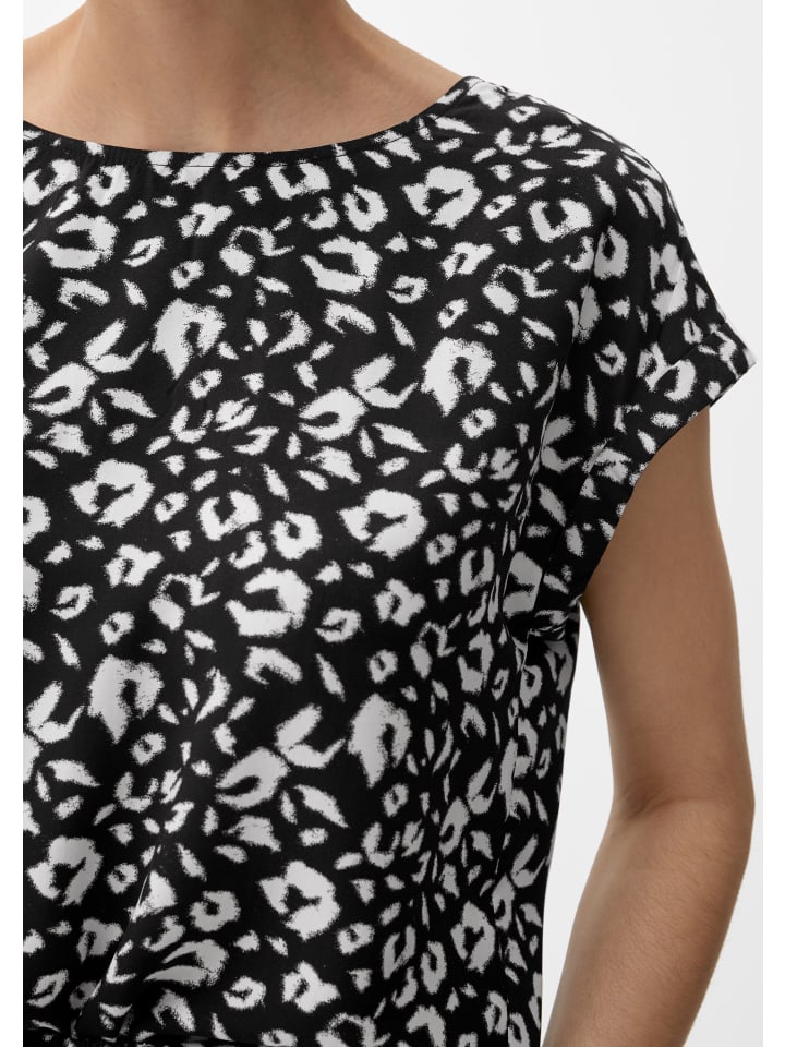 Эта блузка из высококачественной вискозы свободного кроя очаровывает изысканным вырезом на спине и стильным сплошным узором. Мягкая ткань и спущенные плечи создают непринужденный, повседневный образ на каждый день.