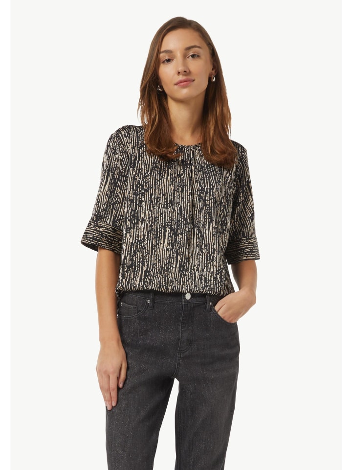 Satin Sensation: Эта блузка с принтом по всей поверхности сочетает в себе элегантность и комфорт. Она предлагает универсальные варианты для любого сезона. Струящаяся ткань из 100% вискозы невероятно мягка на ощупь и дарит ощущение роскоши. Сочетайте блузку с брюками строгого кроя для создания делового образа или с джинсами для создания повседневного стиля.