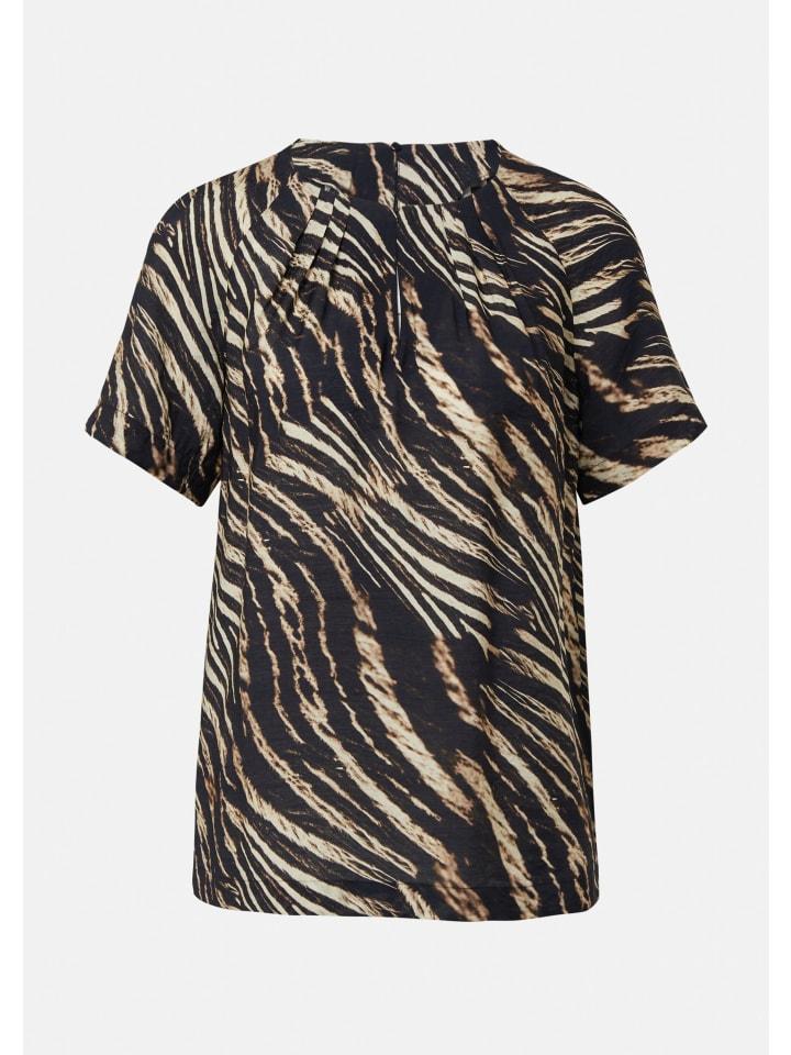 Абстрактная элегантность сочетается с изысканными деталями: эта блузка с короткими рукавами реглан и круглым вырезом горловины обязательно станет вашей новой любимицей. Эффектная складка и изящная застежка на пуговицы придают изделию современный вид. Создавайте разные образы - от делового до повседневного. Абстрактный узор добавит стильный акцент и сделает блузку настоящей приманкой для глаз в вашем гардеробе.