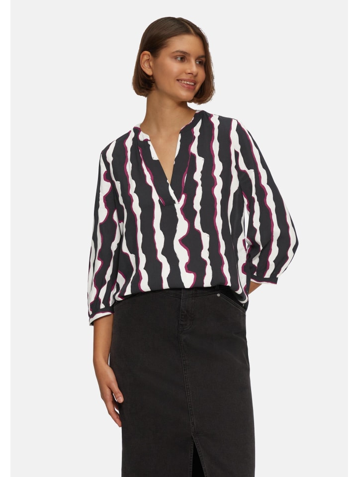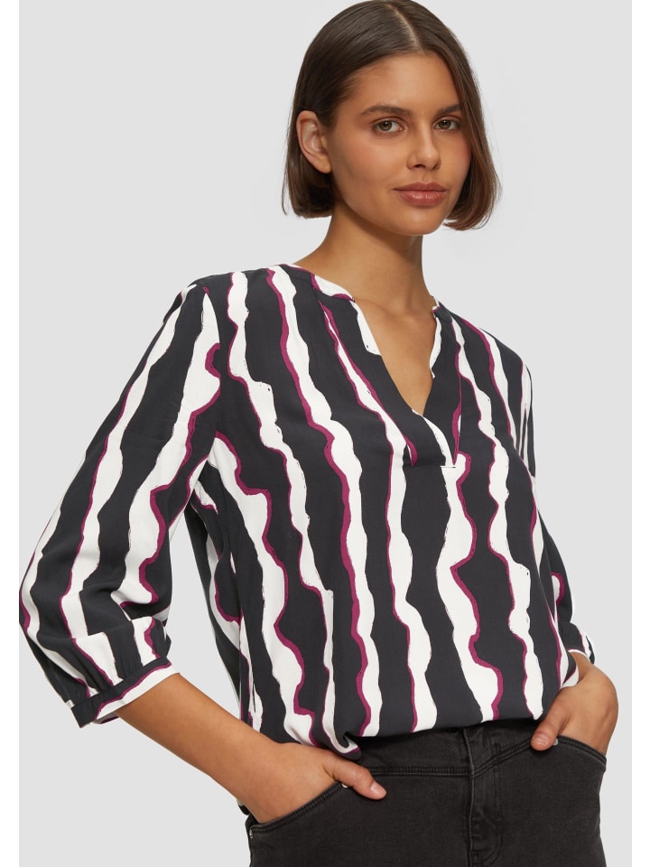 Эта воздушная, легкая туника из вискозы с выразительным рисунком впечатляет своим струящимся кроем. Рукава 3/4 и элегантные манжеты создают женственный образ для непринужденных моментов.