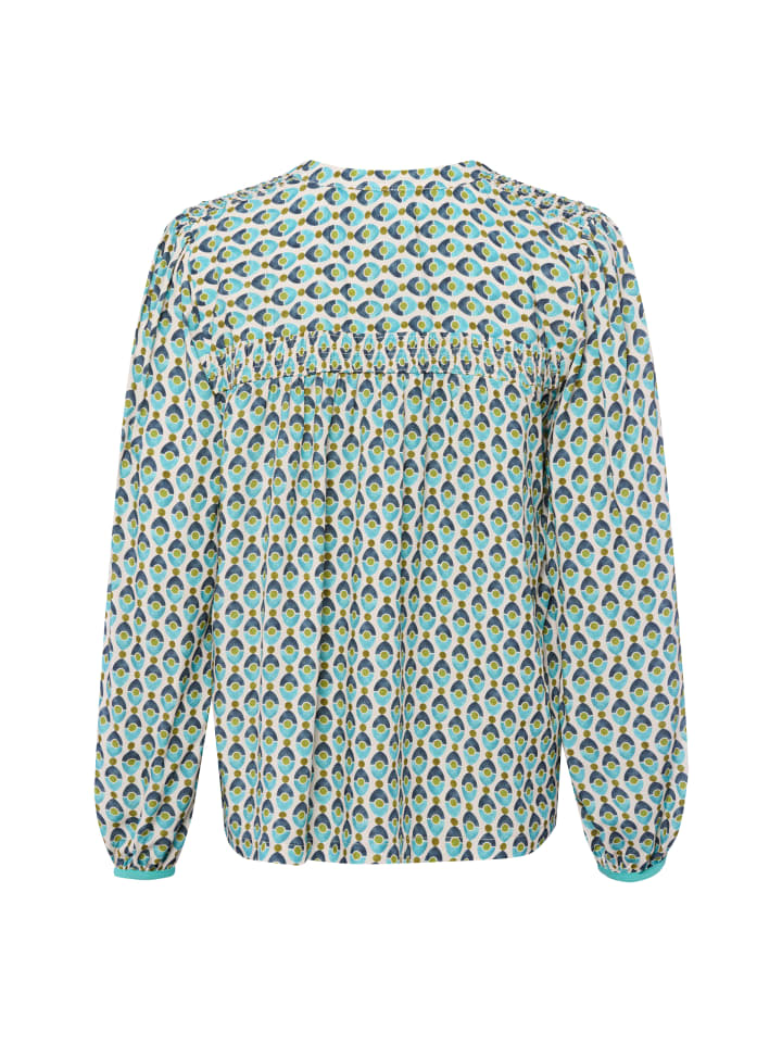 Эффектный узор идеально дополняет струящуюся вискозу, придавая блузке Эмили эффектный вид и чудесные ощущения - присборенные детали добавляют стильные акценты.