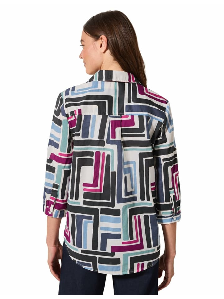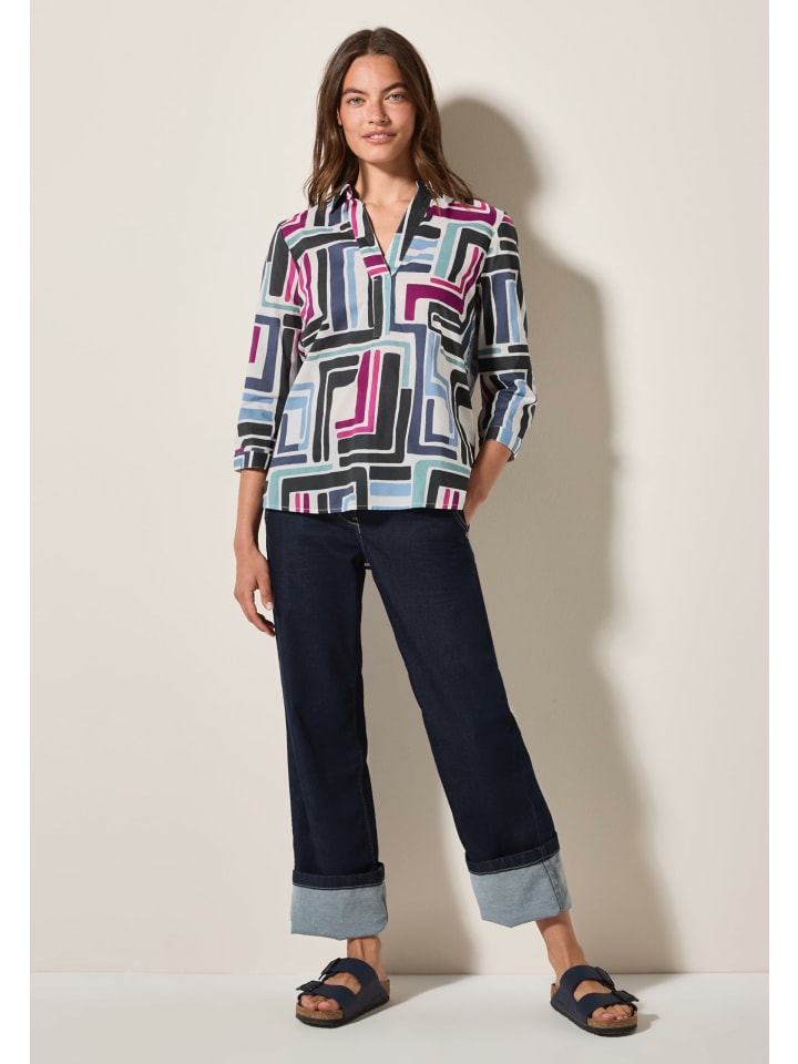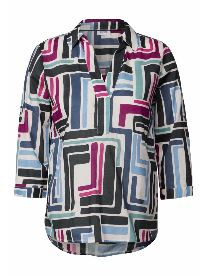 Эта женская блузка от CECIL впечатляет графическим узором и легкой хлопковой тканью. Классический рубашечный воротник и рукава три четверти придают ей вневременный вид. Благодаря свободному крою она идеально подходит для...