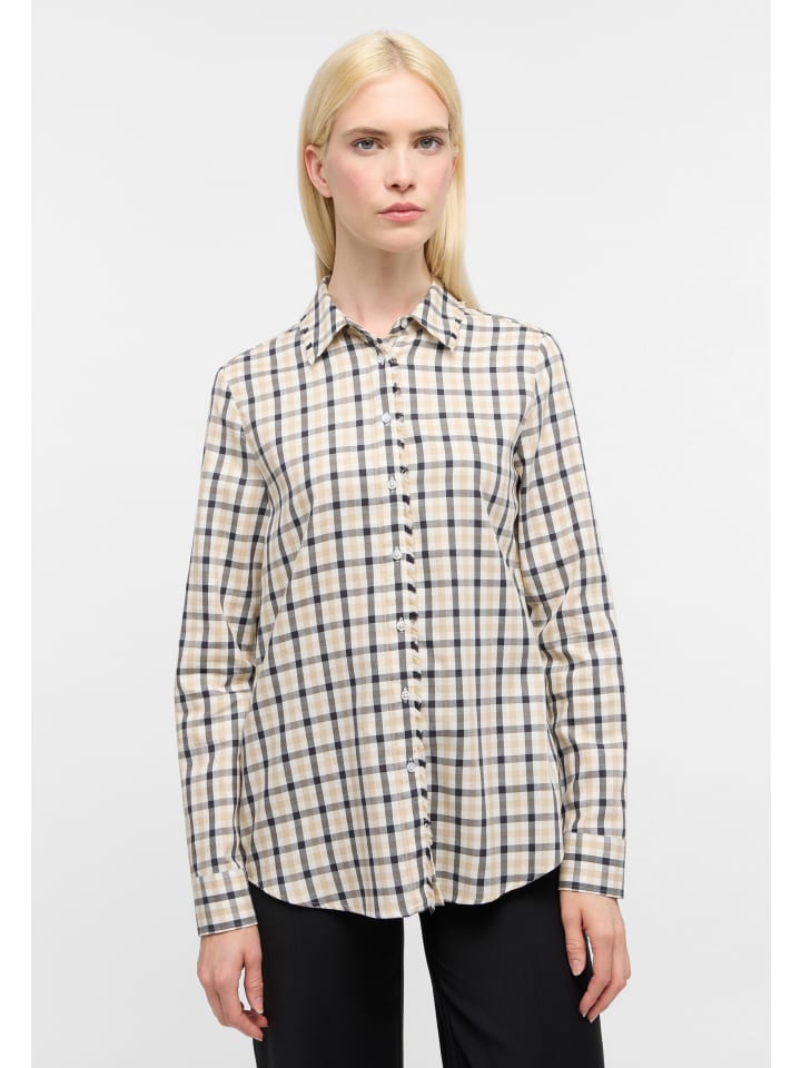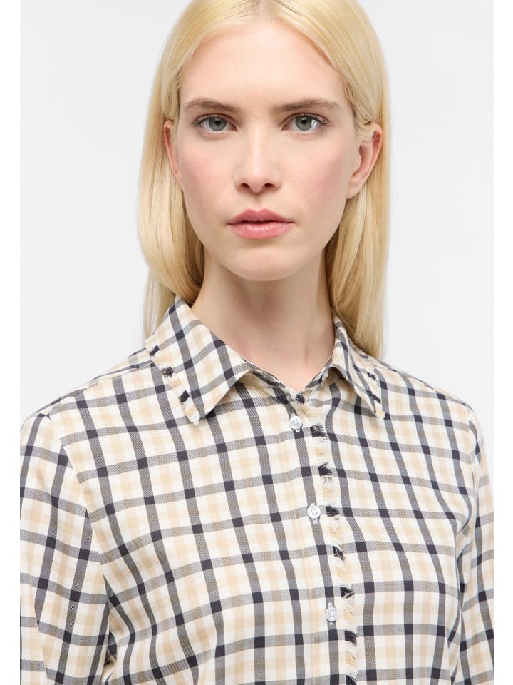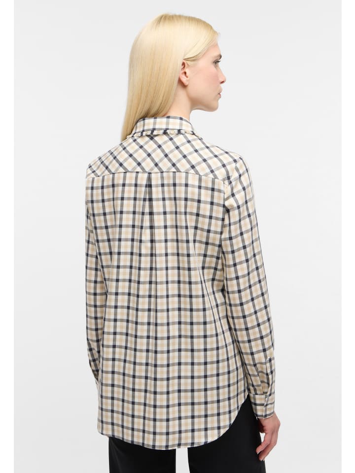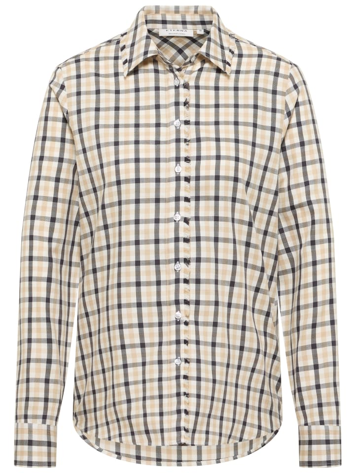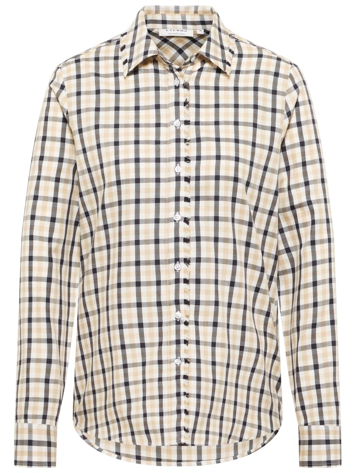 Откройте для себя женскую блузку ETERNA с классическим рубашечным воротником для элегантного образа. Эта блузка с длинными рукавами и классическим клетчатым узором универсальна и добавит нотку свежести в ваш гардероб.