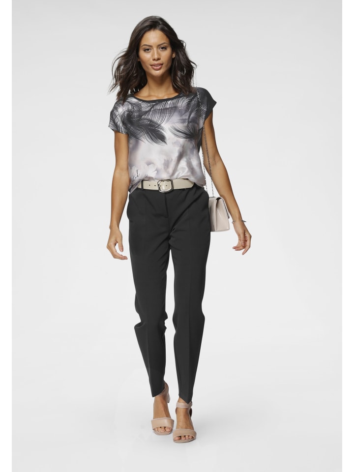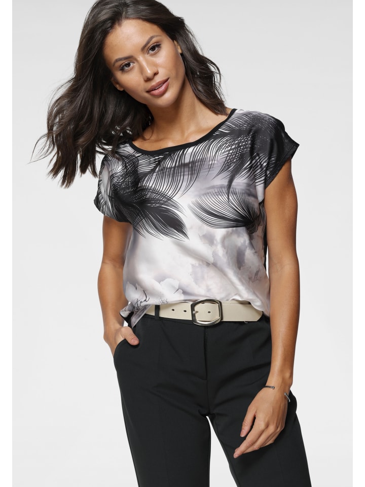 Универсальная женская блузка-рубашка от Laura Scott. Длина до бедер, облегающий силуэт, и короткие рукава. Стильный принт дополняет образ. Мягкая и легкая ткань делает этот топ исключительно удобным.