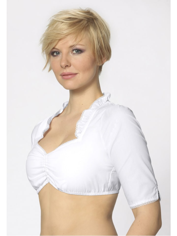 Блузка дирндль Stockerpoint B-1015 белого цвета. Эта классическая блузка впечатляет своей превосходной посадкой. Элегантный воротник украшен нежным кружевом и прекрасно подчеркивает декольте. Кулиска спереди позволяет регулировать вырез для идеальной посадки по фигуре. Изящная кружевная отделка на манжетах добавляет элегантности и завершает образ. Эта блузка станет идеальным дополнением к вашему классическому дирндлю.