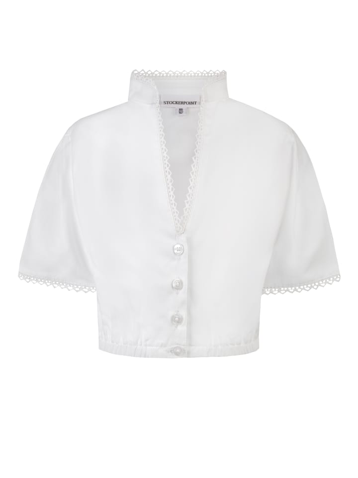 Детская блузка-дирндль Susi от Trachtenkids белого цвета. Эта блузка с высоким воротником украшена нежным кружевом на V-образном вырезе и рукавах. Небольшой воротник-стойка подчеркивает элегантный дизайн и искусно подчеркивает фигуру. Блузка-дирндль застегивается на традиционные пуговицы. Эта высококачественная блузка универсальна и прекрасно сочетается с различными дирндлями.
