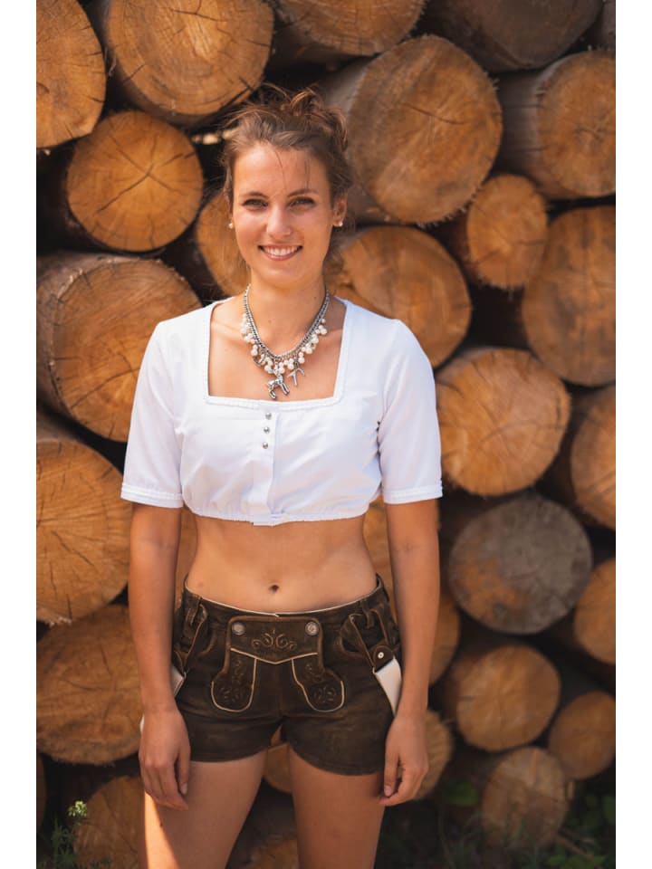 Блузка дирндль исключительно высокого качества. Элегантный блеск этой шелковисто-мягкой атласной ткани с отделкой в виде лягушачьего рта делает эту блузку поистине особенной. Ее можно носить под дирндль по особым случаям, например, на свадьбу или крестины. Благодаря низкому содержанию синтетических волокон, она практически не требует глажки и полностью производится в Европе.