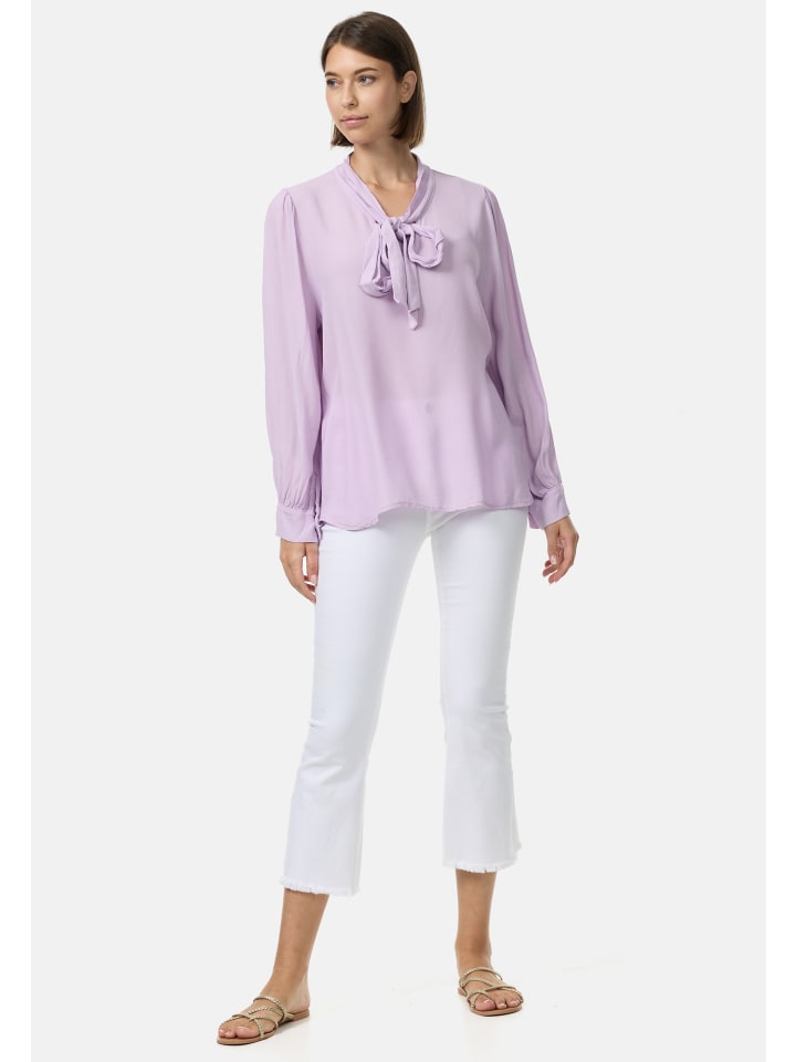 Деловая блузка имеет свободный прямой крой, идеально подходящий для демонстрации роскошного материала, который мягко ниспадает по фигуре и обеспечивает максимальный комфорт. Длина, которая примерно до бедер, подходит как для брюк, так и для юбок и прекрасно сочетается с блейзерами и элегантными жакетами. Элегантная женская блузка сзади немного длиннее, чем спереди. Эта изящная блузка идеально подходит для деловых встреч, но ее можно носить и в повседневной жизни, и по особым случаям. Особый материал и высокое качество исполнения подчеркивают изысканный дизайн. Легкость и воздушность делают эту женскую блузку идеальной для лета или ношения в помещении, например, на мероприятиях, вечеринках и работе.