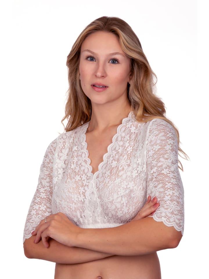 Блузка дирндль Thesi нежно-кремового цвета сочетает в себе стильную элегантность и удобную посадку, идеально подходящую для каждой поклонницы традиционной одежды. Эта блузка из эластичного кружева, которое мягко облегает тело, является прекрасным примером сочетания традиций с современным комфортом.