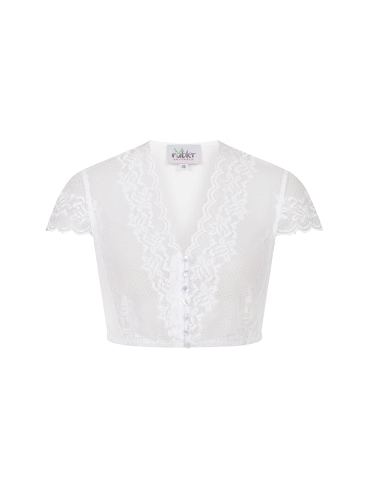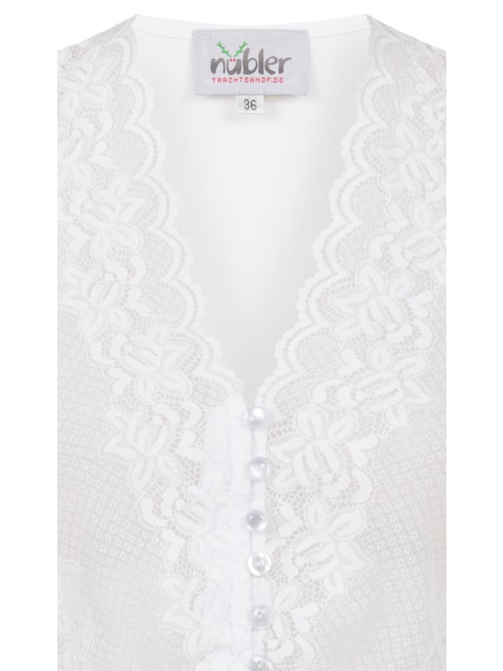 Наша прекрасная блузка Tabea дирндль от Nübler - настоящая приманка для глаз. V-образный вырез спереди выполнен из кружева, а спинка - из хлопка. Короткие рукава дополнены кружевом. Блузка застегивается спереди на красивые перламутровые пуговицы. Эластичный подол гарантирует идеальную посадку. Благодаря высококачественному пошиву эту блузку можно носить в любой ситуации.